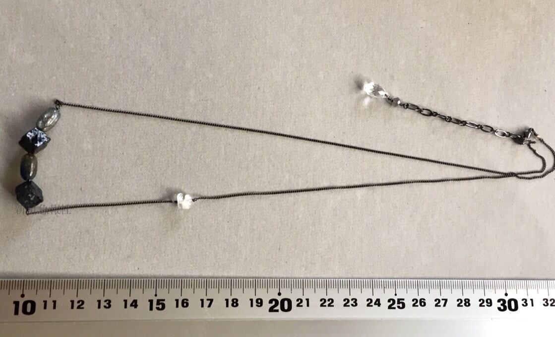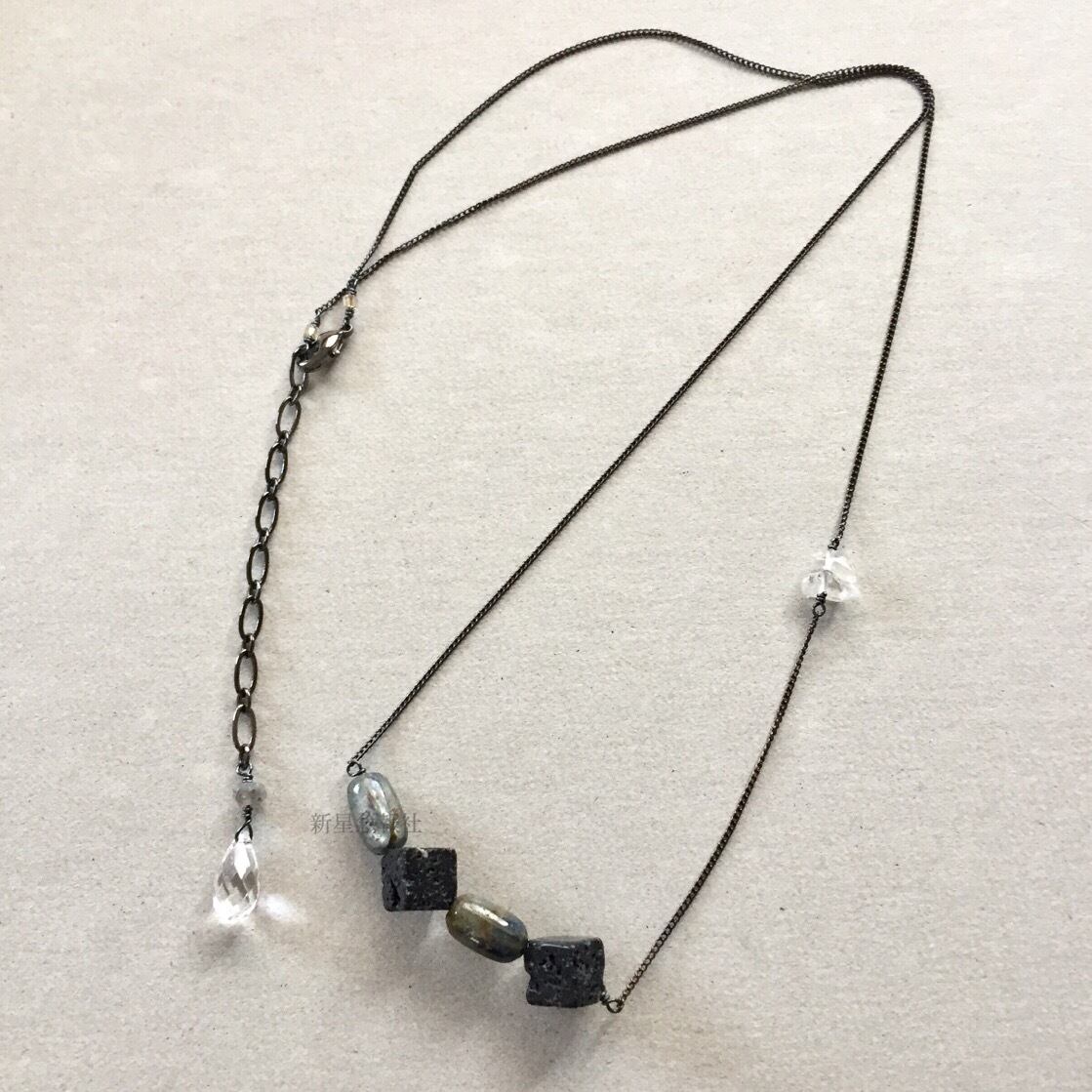 一部にアイオライト、溶岩、水晶、ラブラドライト、スワロフスキーを使用しています。