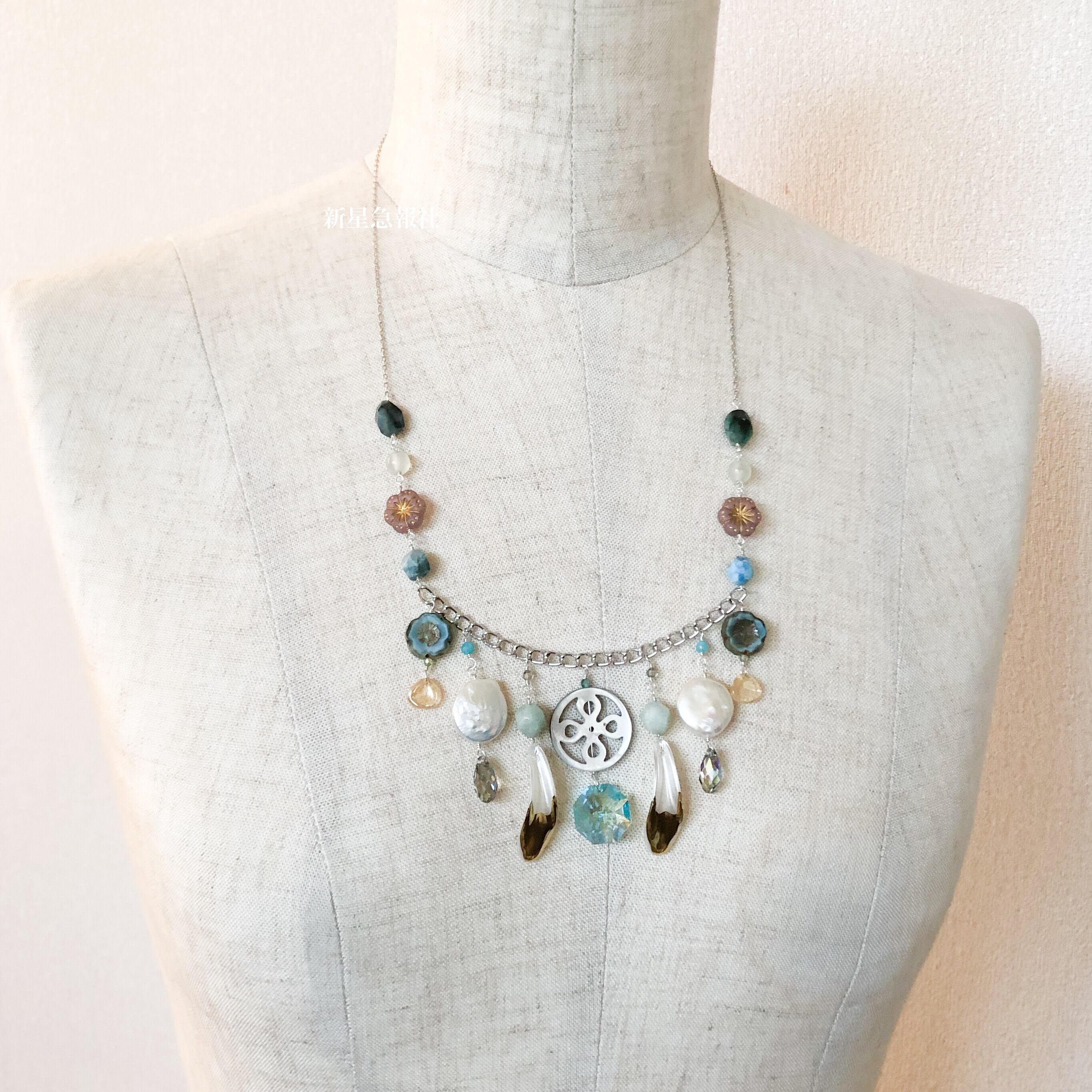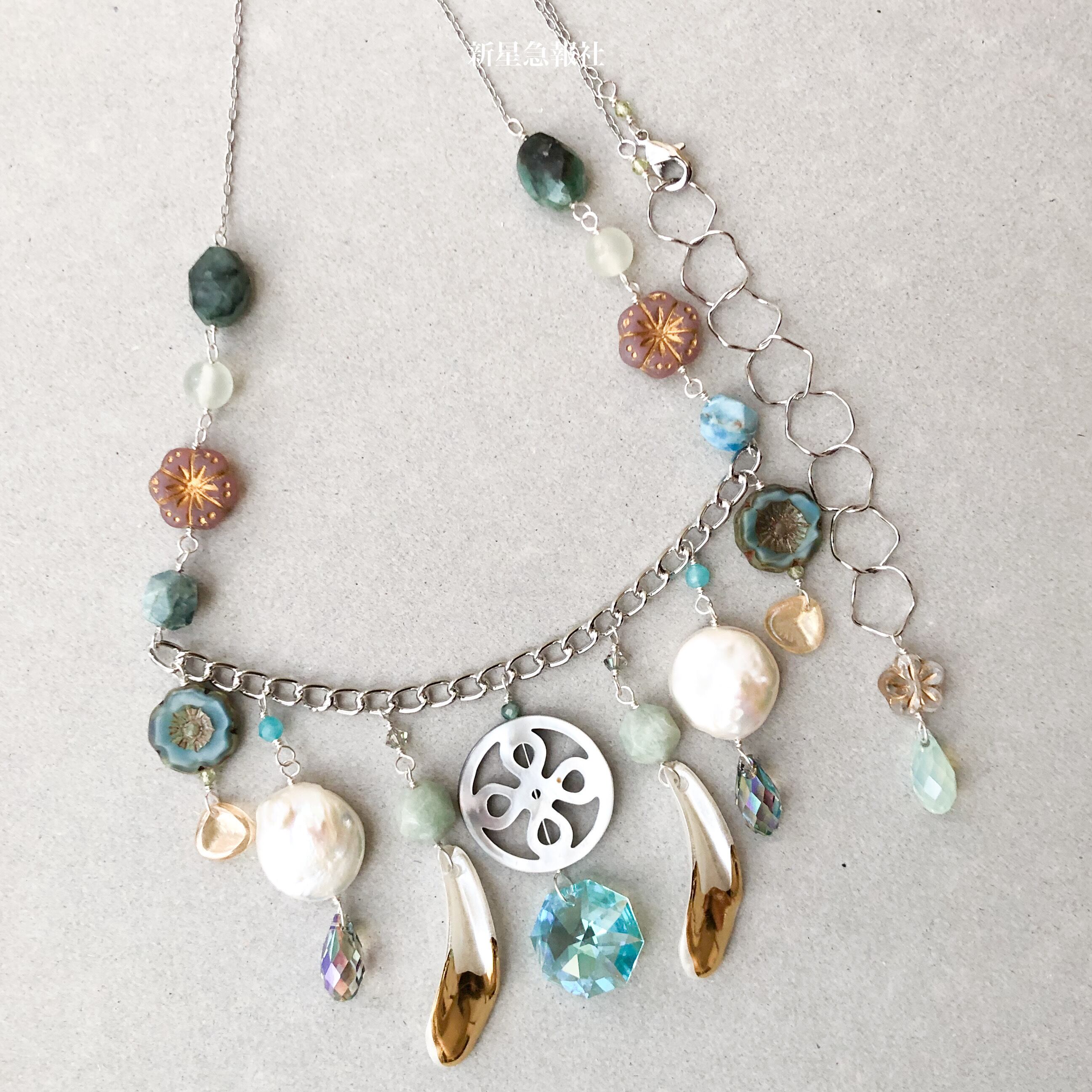 貝素材、樹脂、ガラス(チェコ製、スワロフスキー社製)