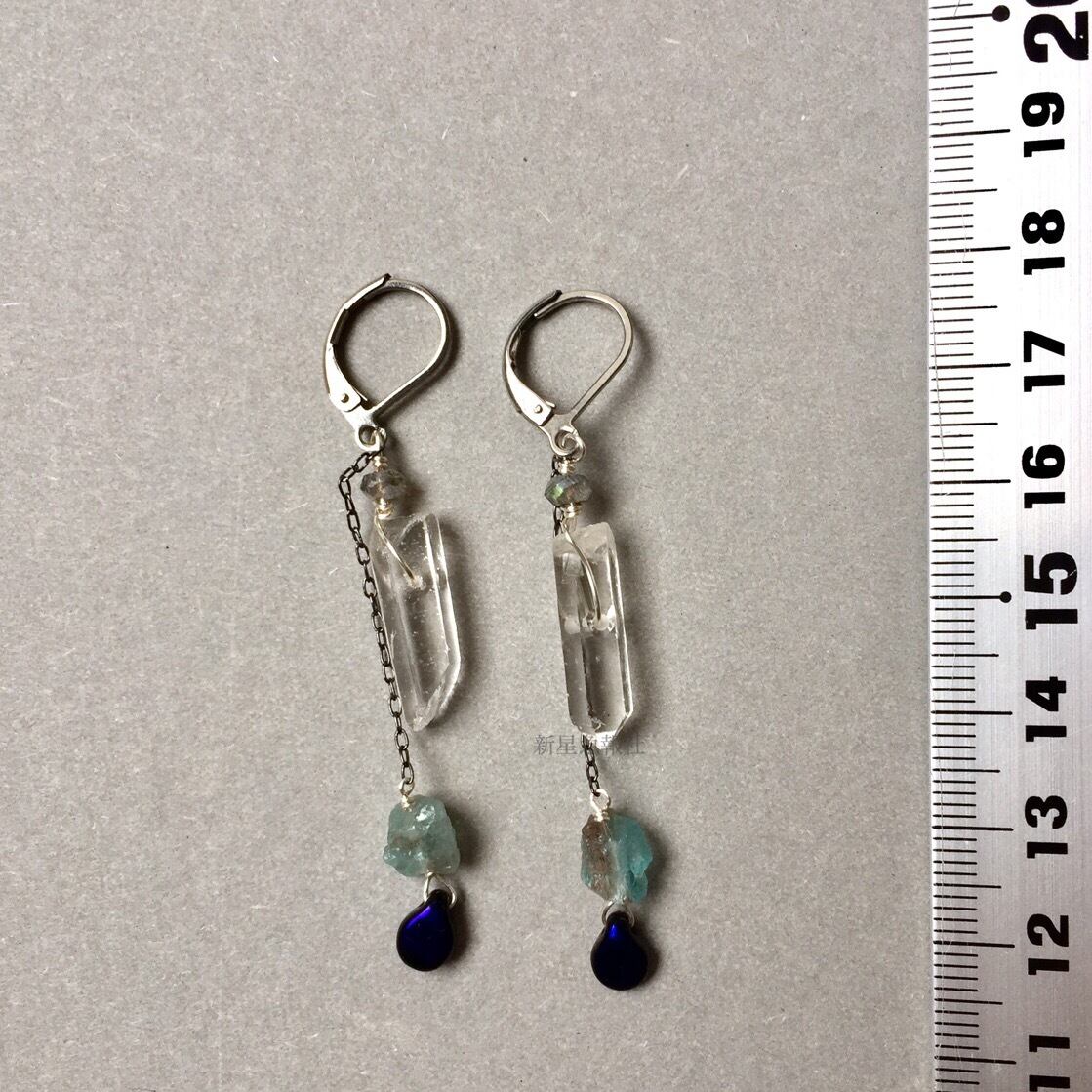 アクセサリーは一部に水晶、アパタイト、ラブラドライト、ガラスを使用。