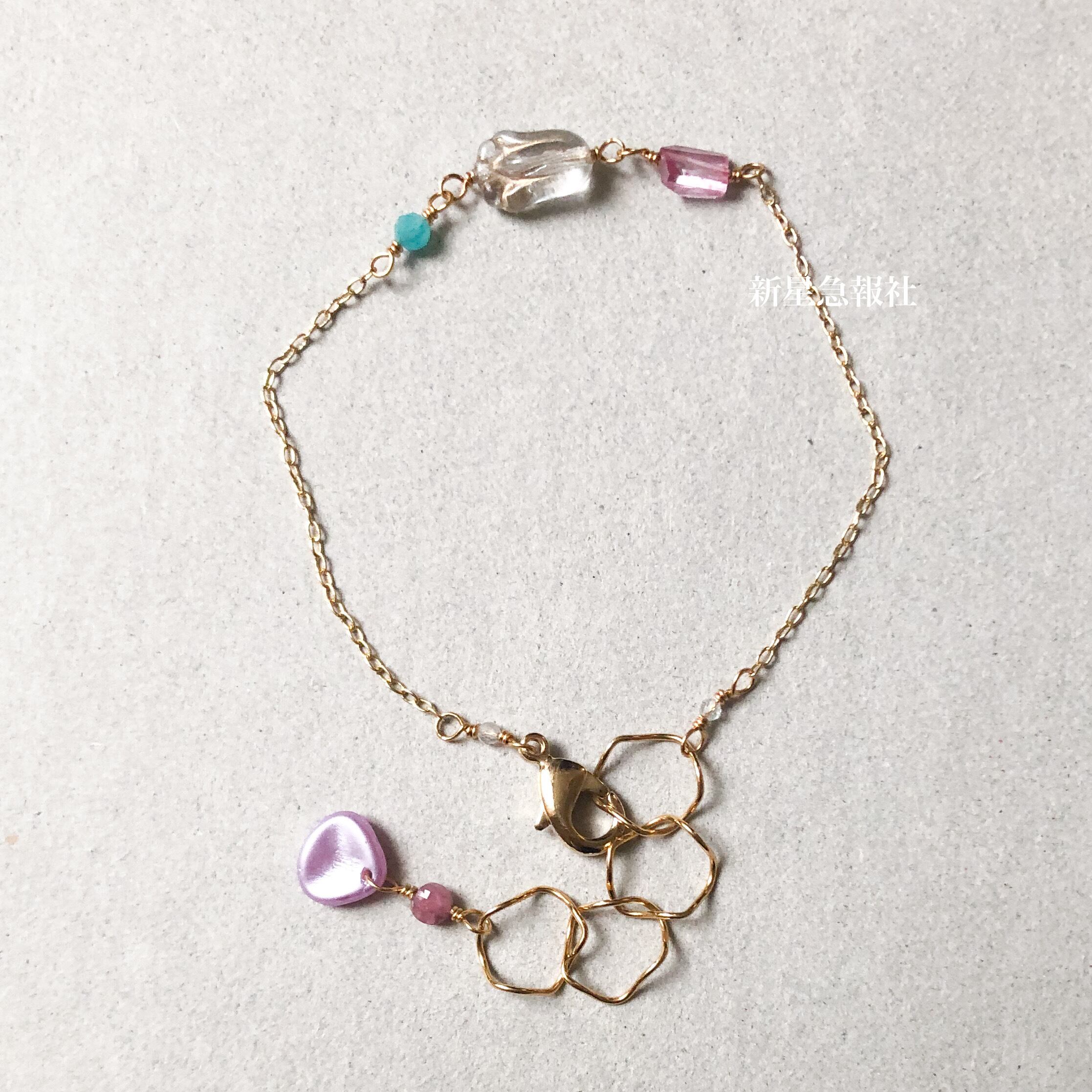 アマゾナイト、トパーズ(染)、アクアマリン、トルマリン、ガラス(チェコ製)