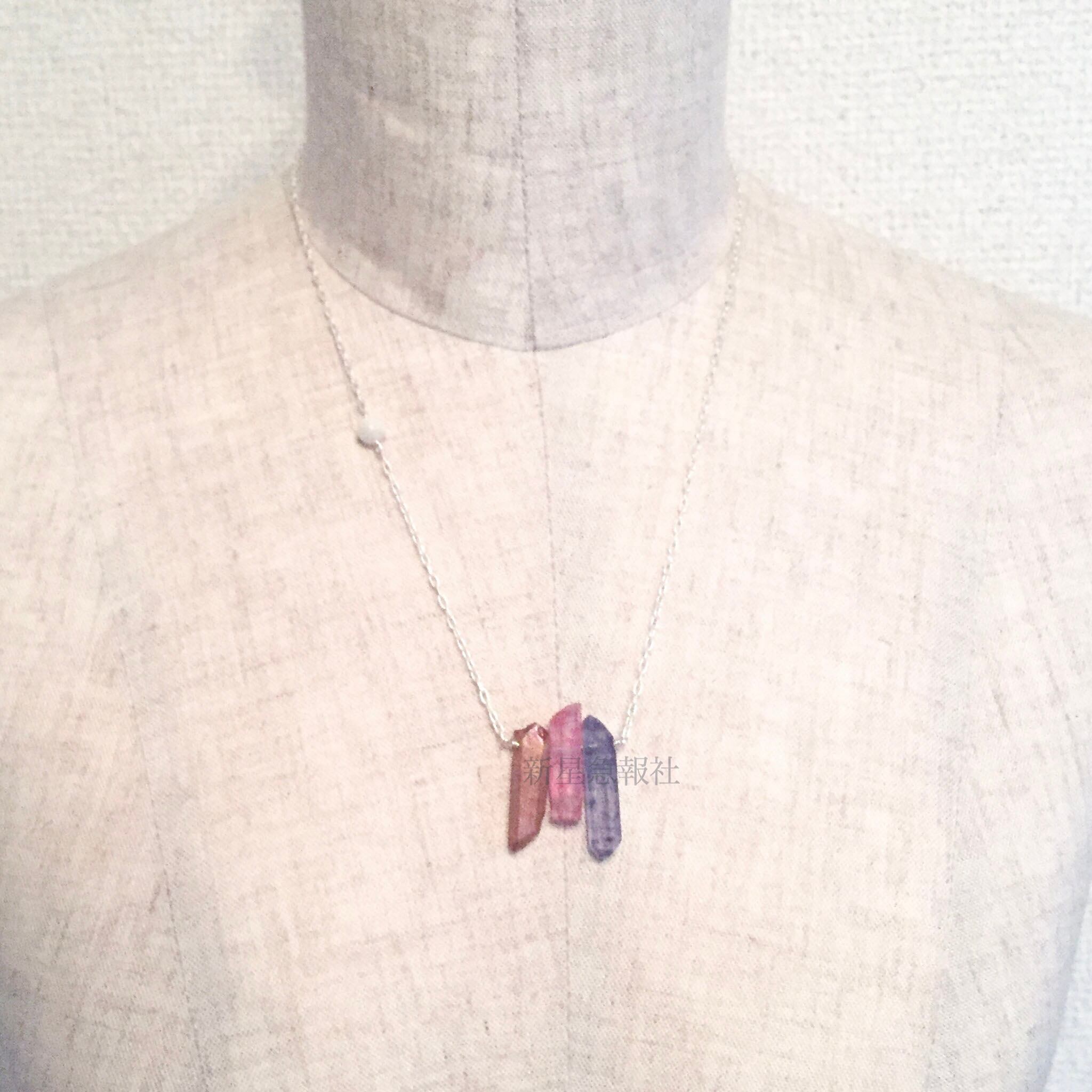 一部に着色された水晶、マザーオブパール、ガラスを使用。