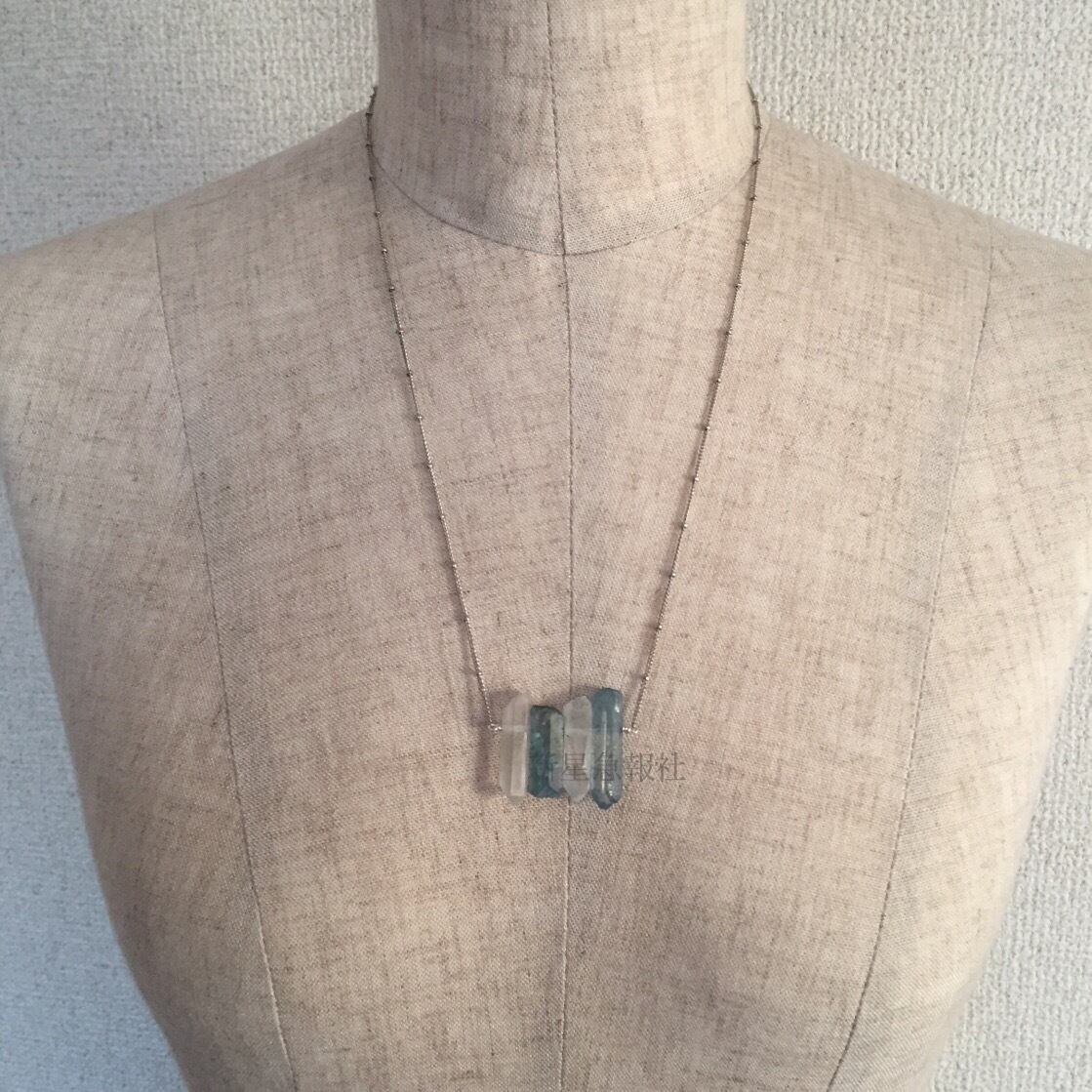 一部に着色された水晶、水晶、ガラス、ヴィンテージビーズを使用。