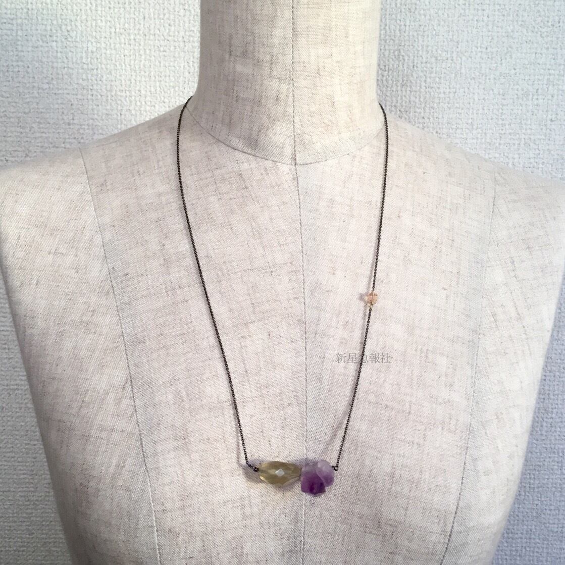一部にアメシスト、レモンクォーツ、エメラルド、スワロフスキーを使用