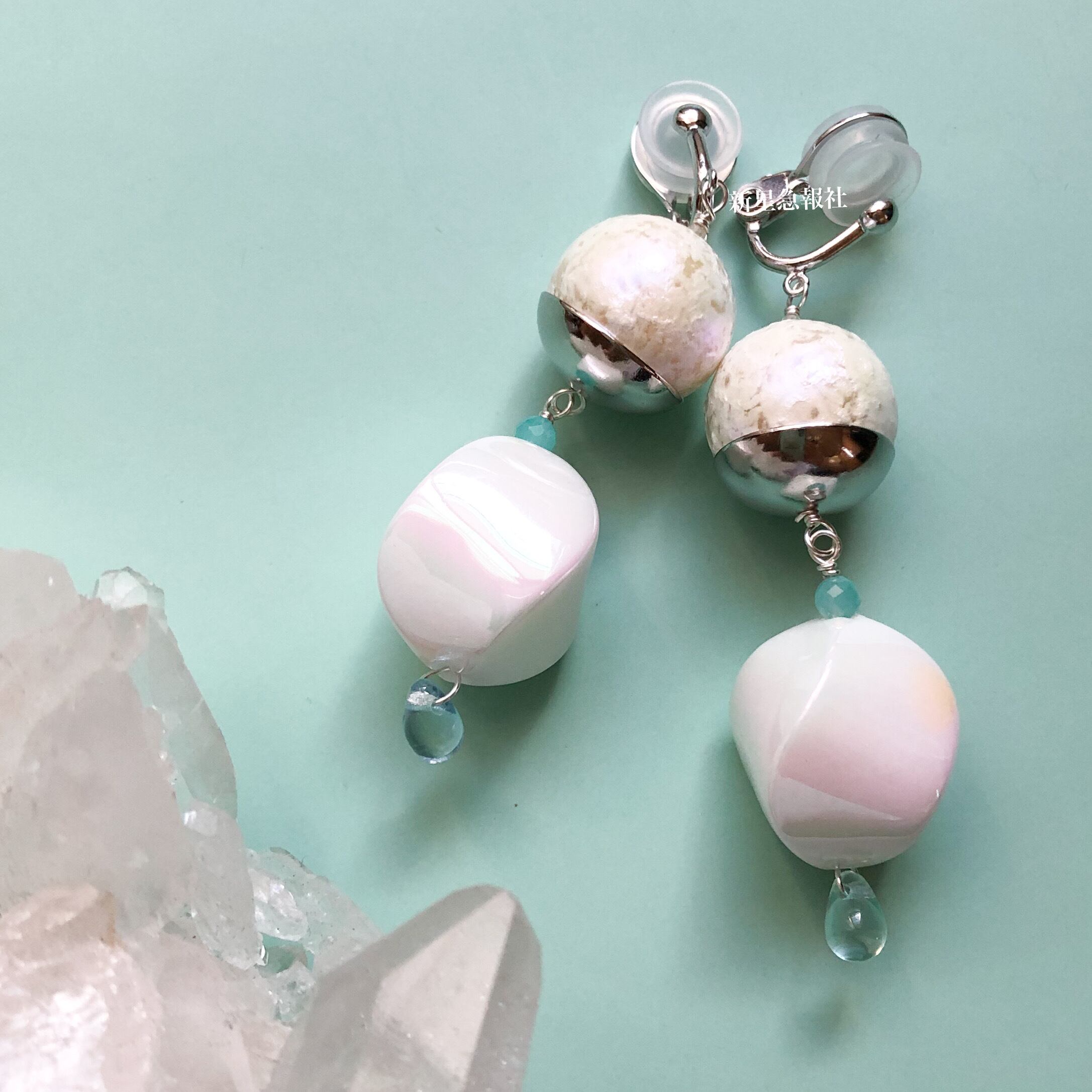 樹脂素材、ガラス(チェコビーズ)、アマゾナイト、アクアマリン