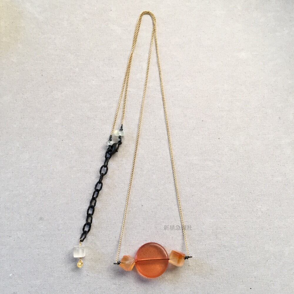 アクセサリーは一部にアクリル、サードオニキス、プレナイト、ムーンストーン、イエローサファイアを含みます。