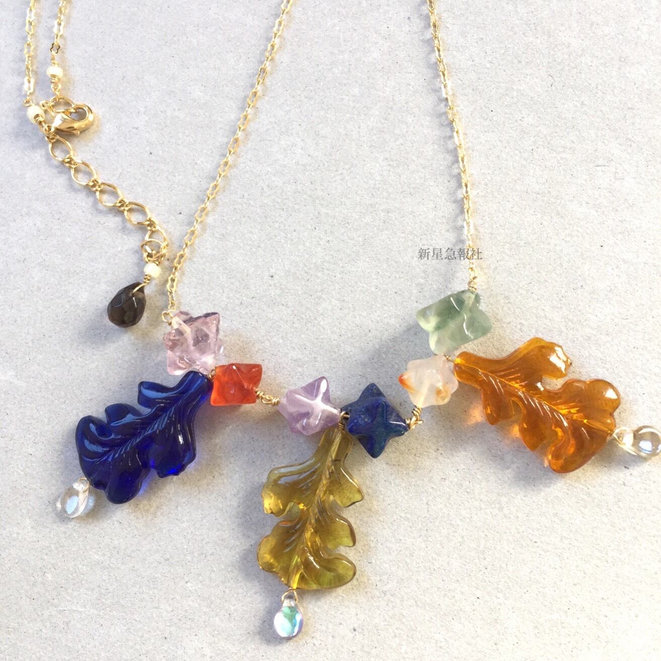 アクセサリーは一部にアクリル、ガラス、フローライト、サードオニキス、