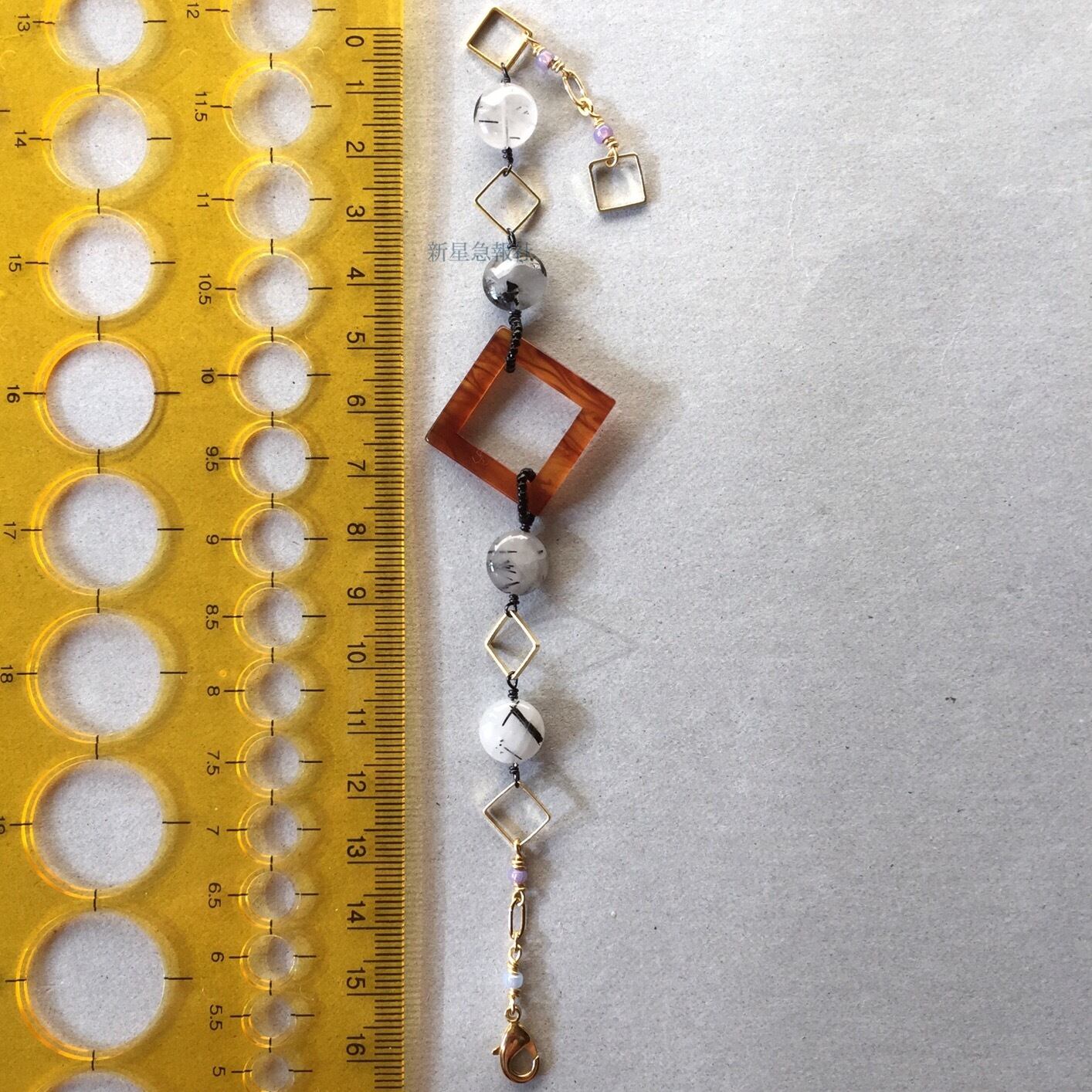 ガラスビーズの輪は時計の針をイメージしています。