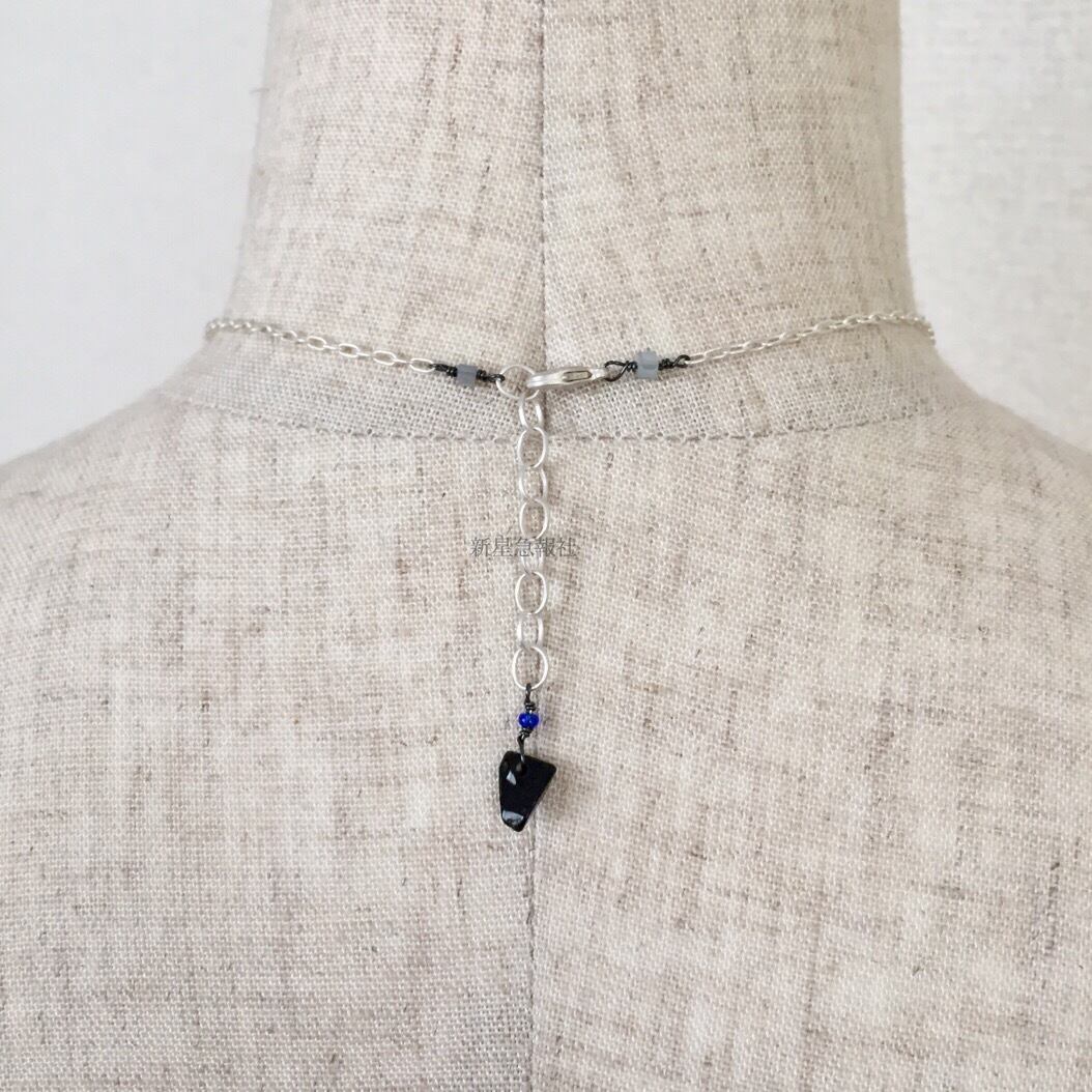 アクセサリーは一部に水晶(着色、ラッカー塗装)ガラス、オニキスを含みます。