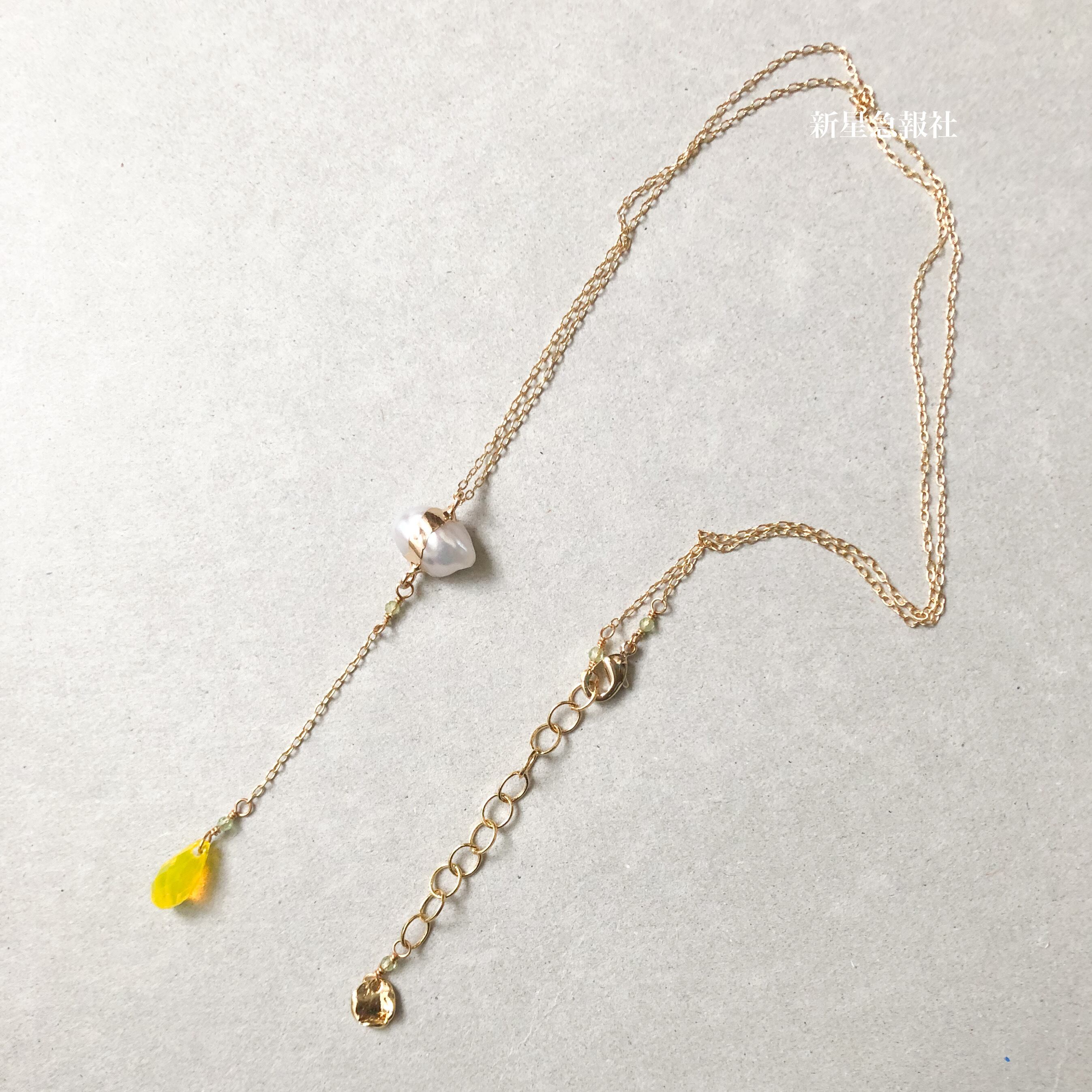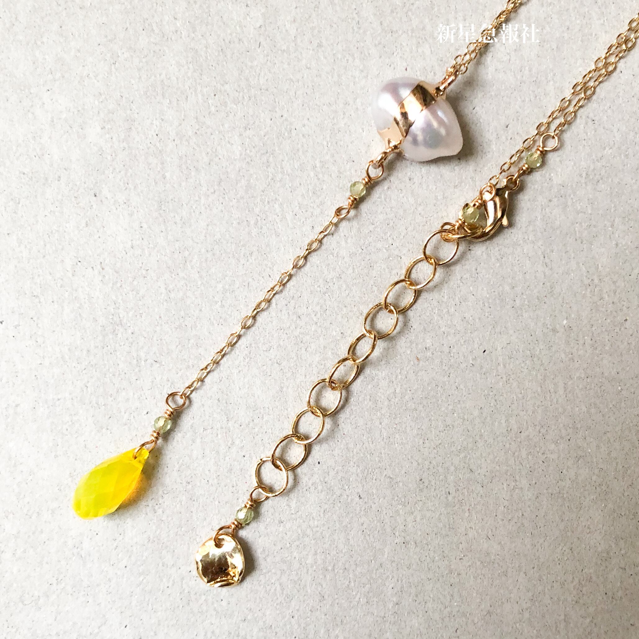ガラス(スワロフスキー社製)、淡水真珠、ペリドット