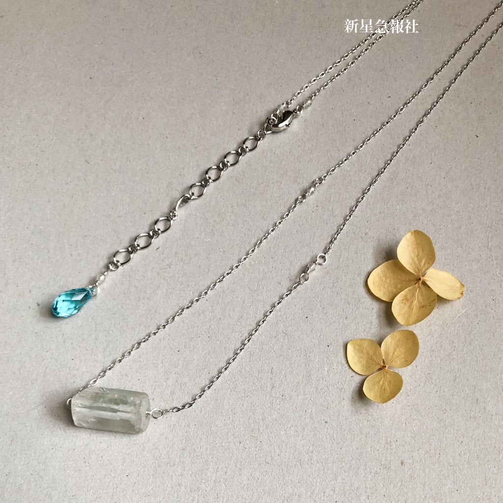 水晶、アクアマリン、ガラス(スワロフスキー社製)