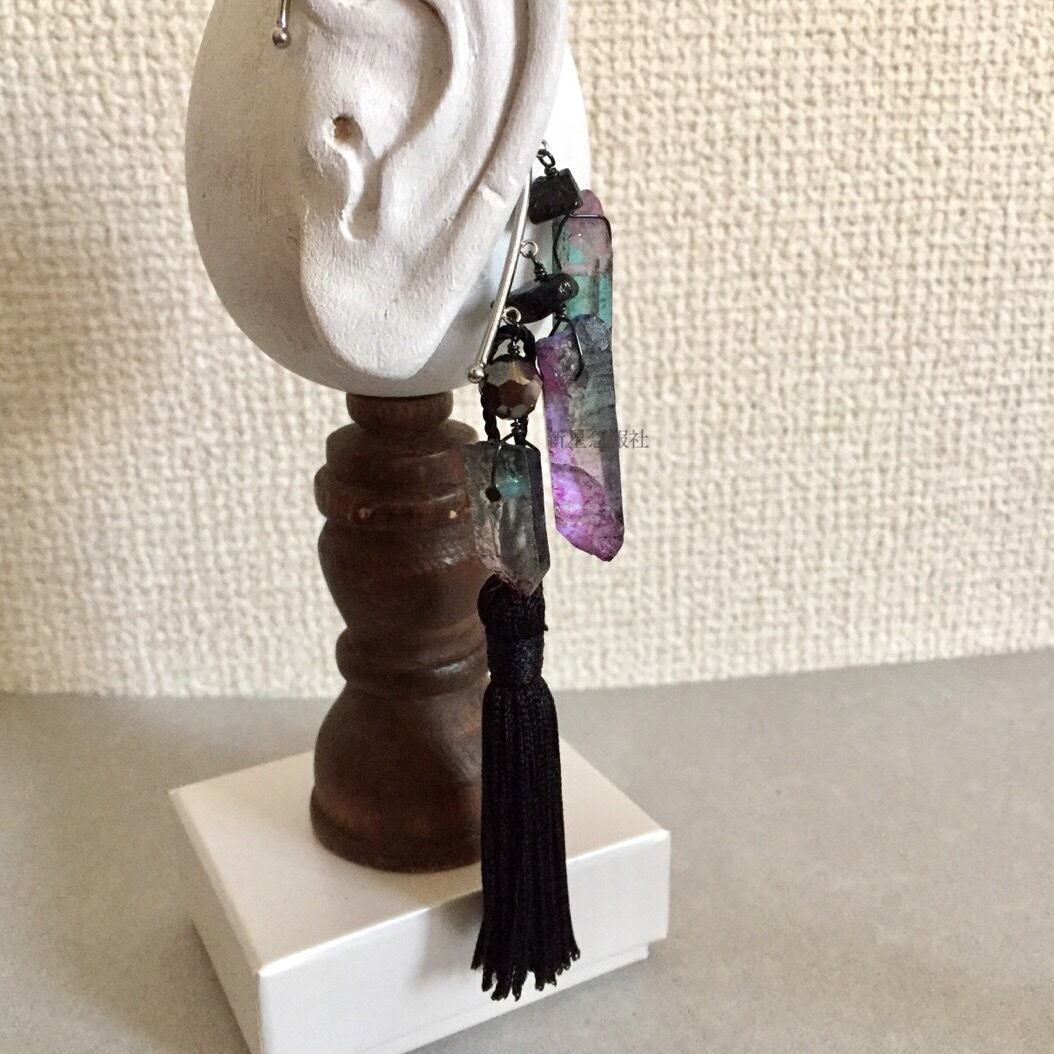 アクセサリーは水晶(着色)、ナイロン、ガラス(スワロフスキー社製)