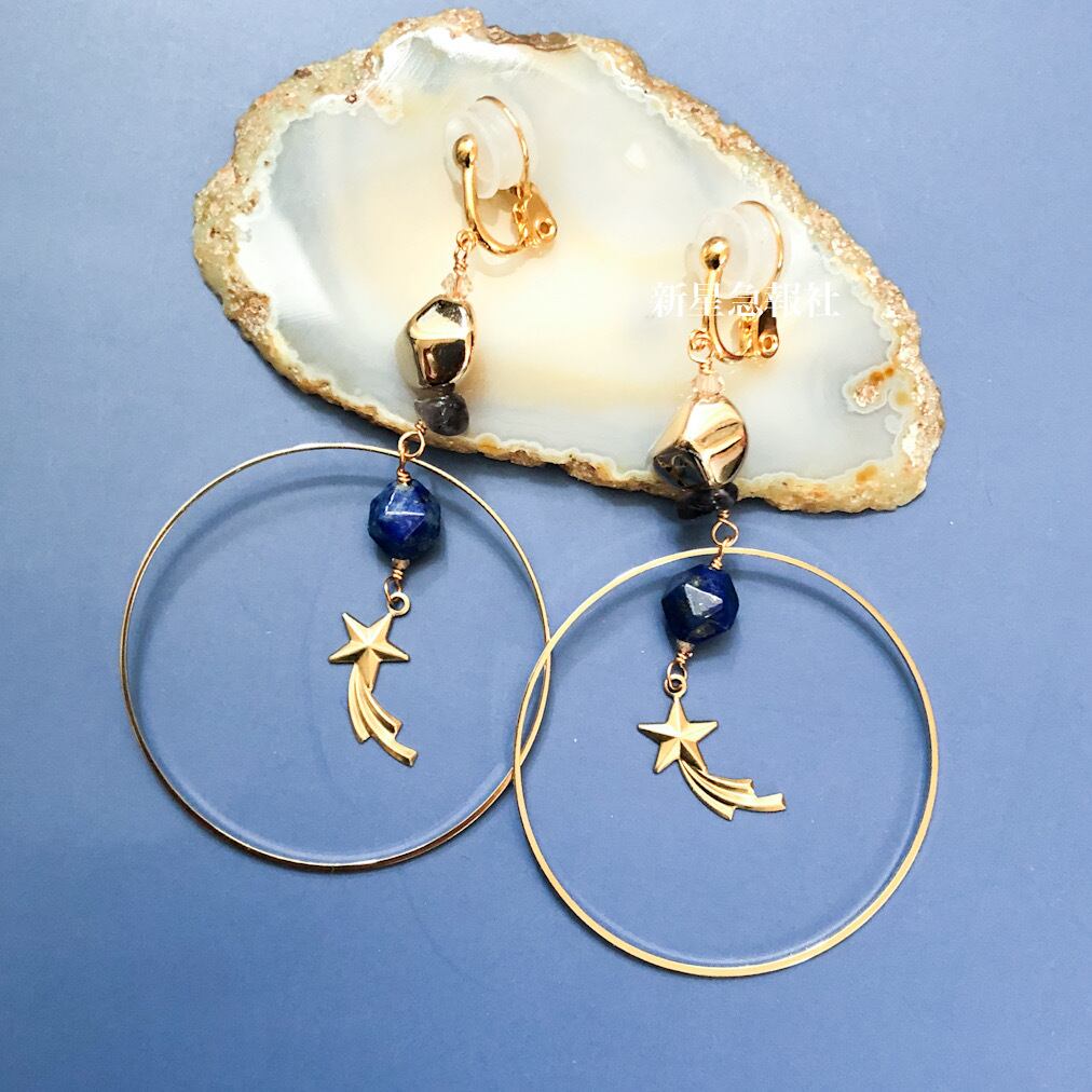 ラピスラズリ、アイオライト、樹脂素材、ガラス(スワロフスキー社製)