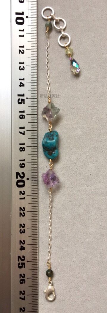 アクセサリーはフローライト、エメラルド、プレナイト、