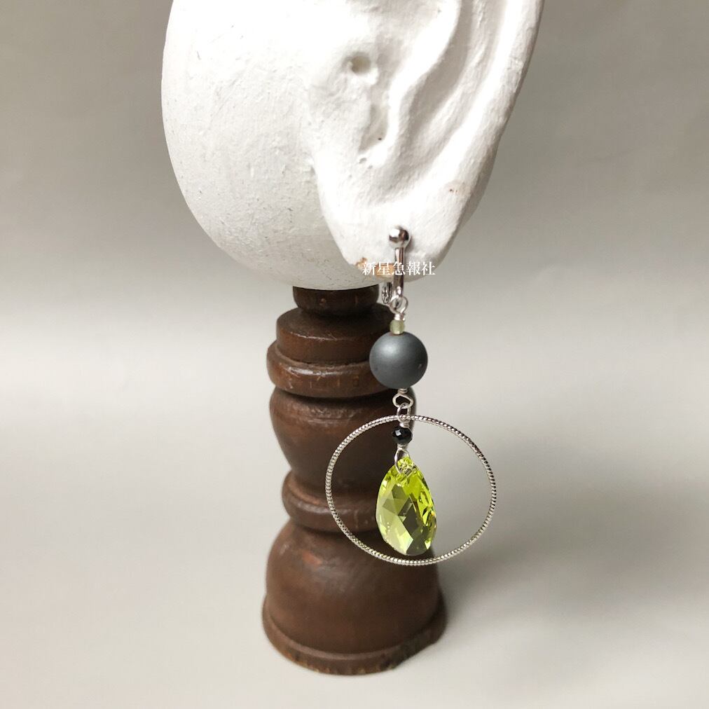 ヘマタイト、ペリドット、ガラス(スワロフスキー社製)
