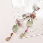 フローライト、プレナイト、樹脂、ガラス(チェコ製、スワロフスキー社製)