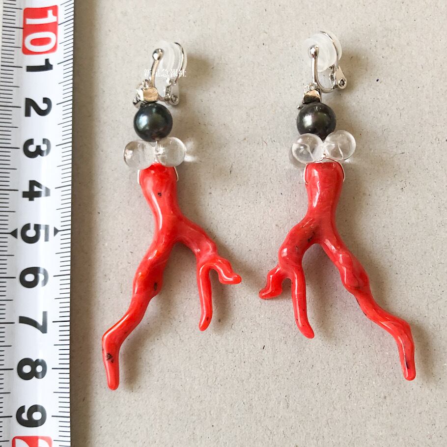 理科室のさんごの標本をイメージして制作したイヤリングです。
