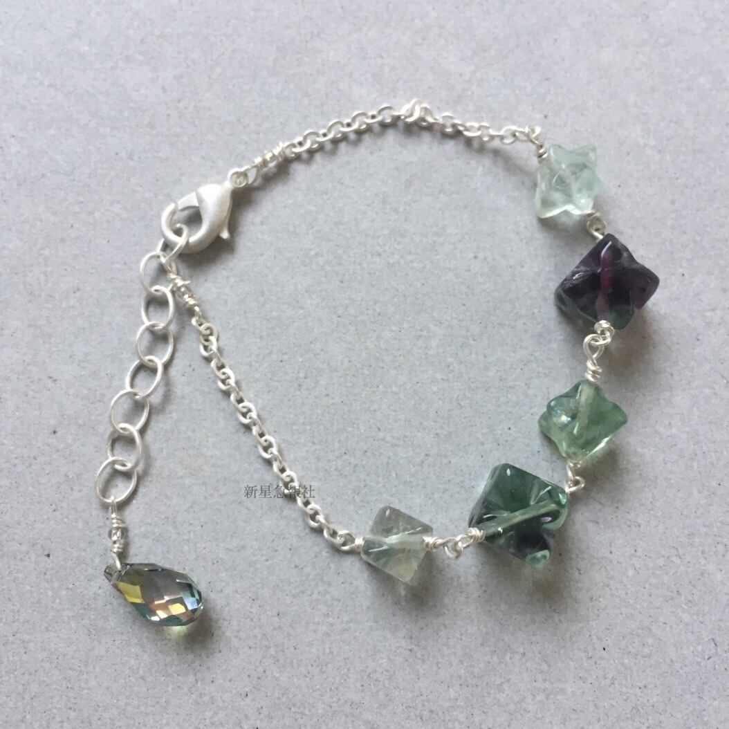 アクセサリーはフローライト、ガラス(一部スワロフスキー社製)を含みます。
