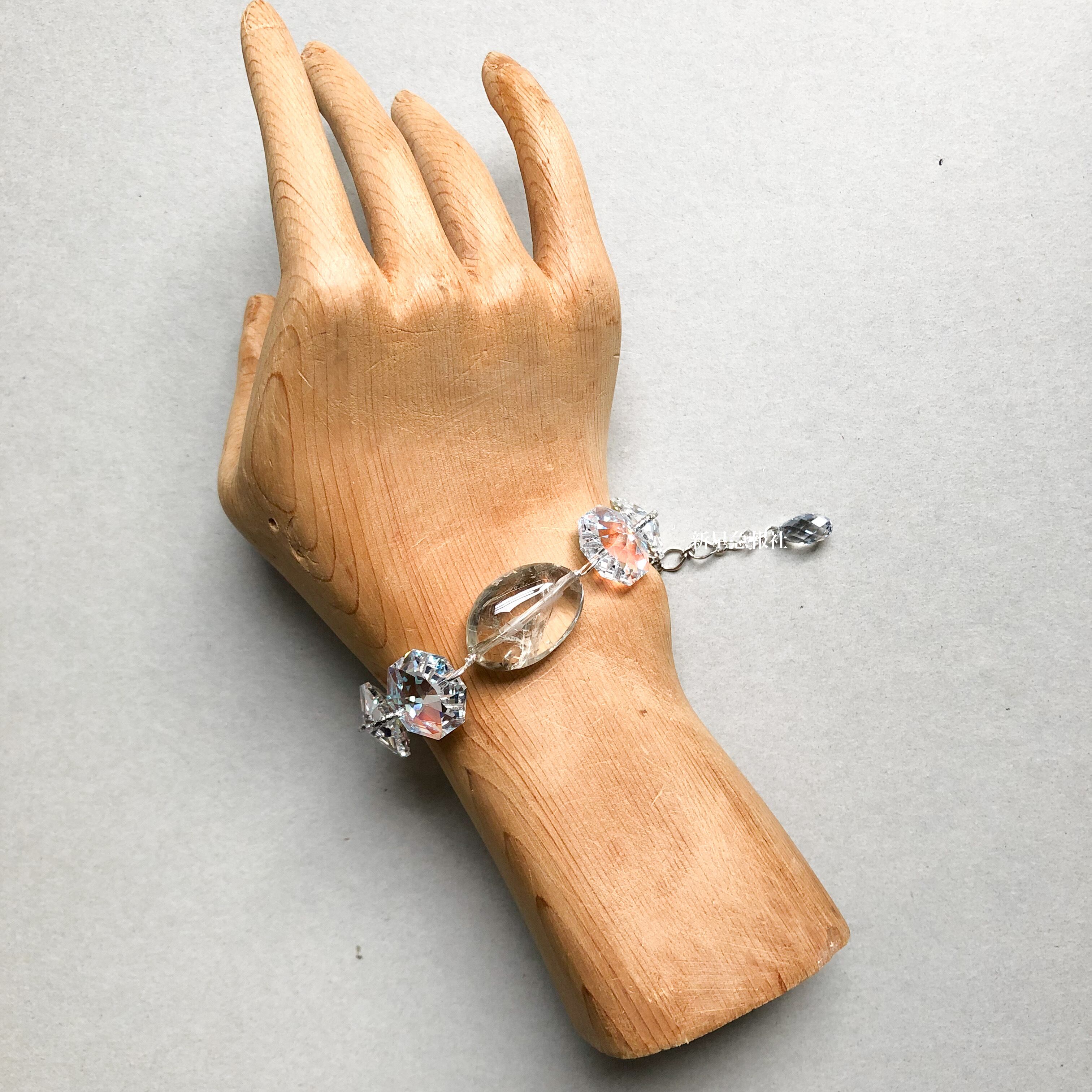 グリーンアメシスト、水晶、ガラス(スワロフスキー社製)