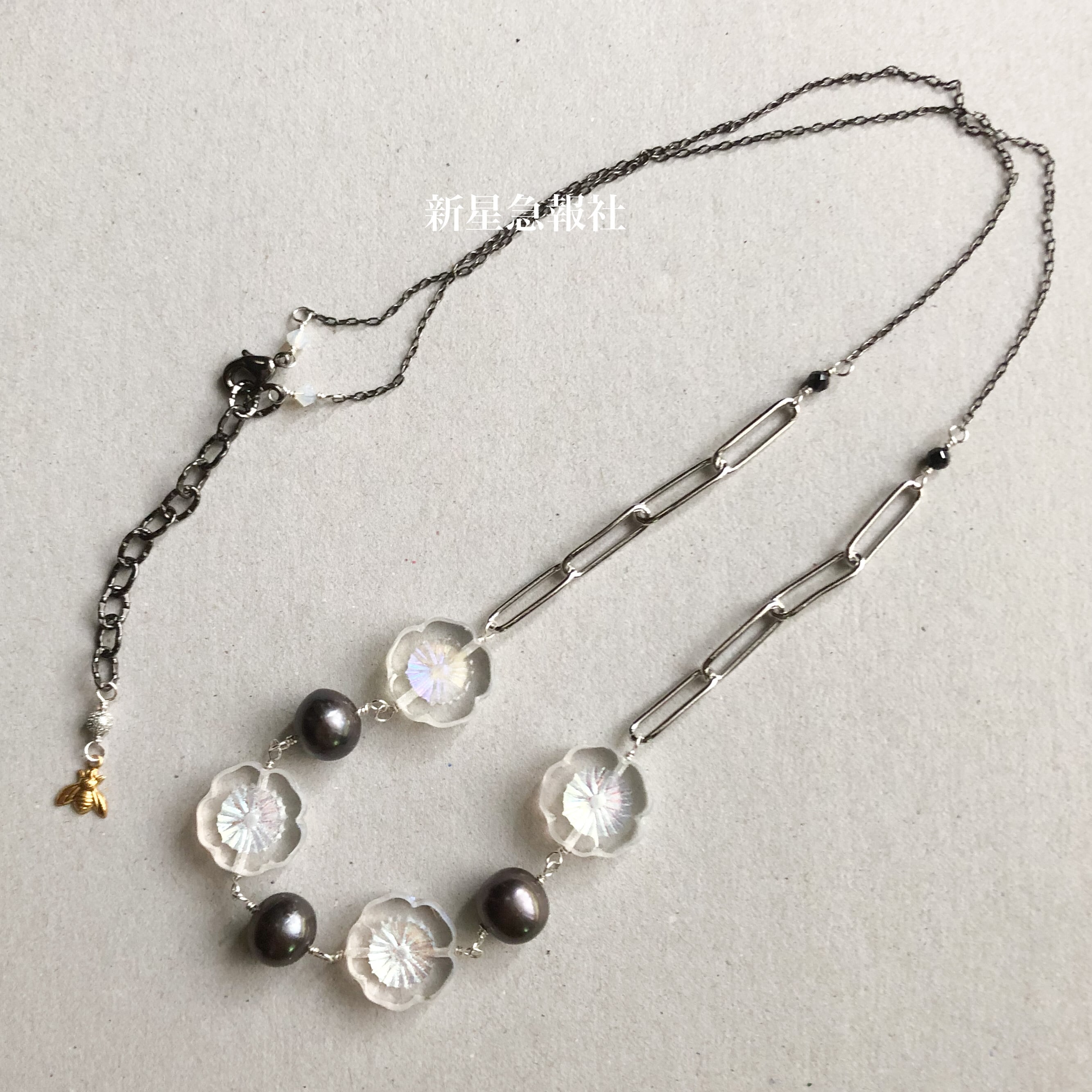 ガラス(チェコ製、スワロフスキー社製)、淡水真珠、