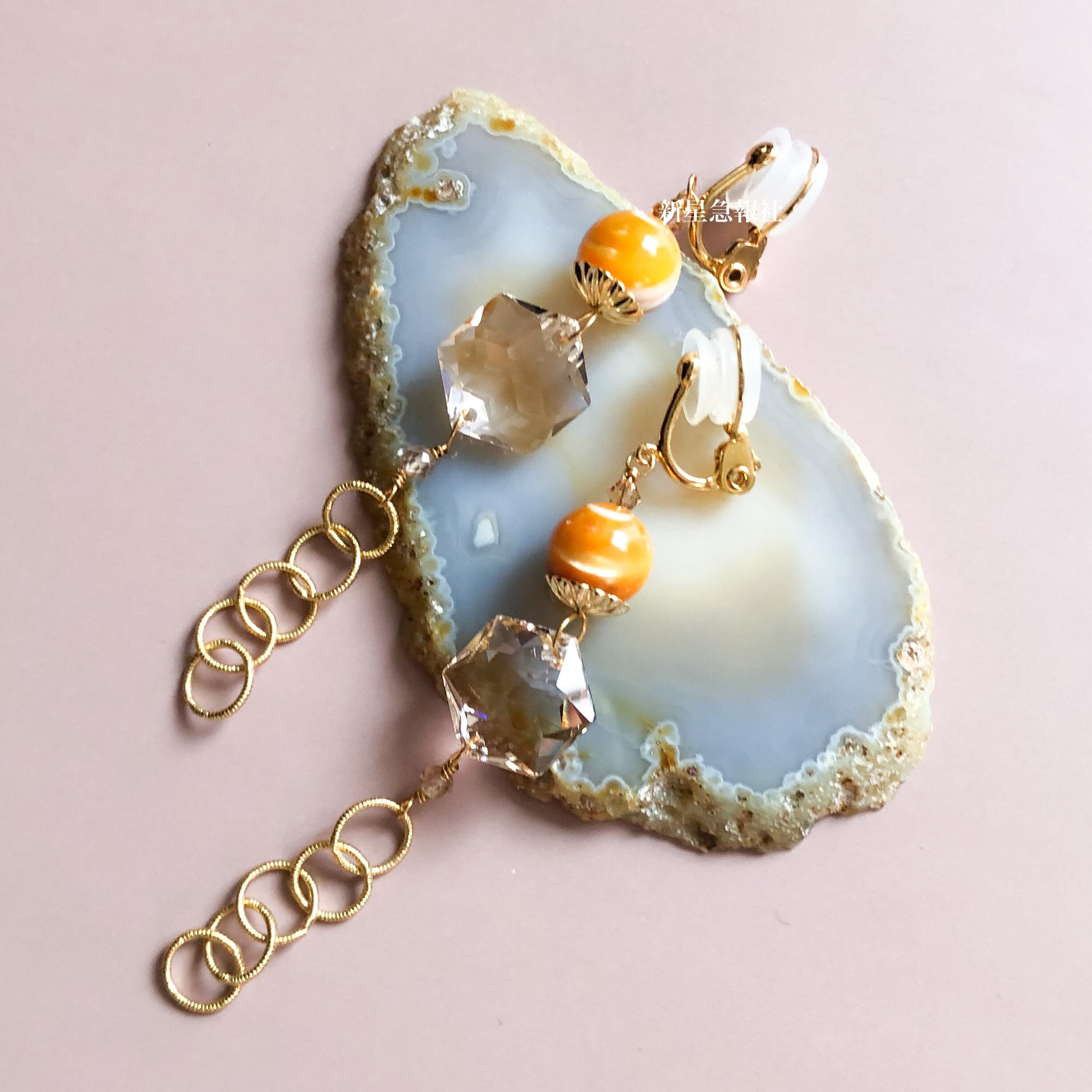 貝素材、ガラス(スワロフスキー社製)、ジルコン