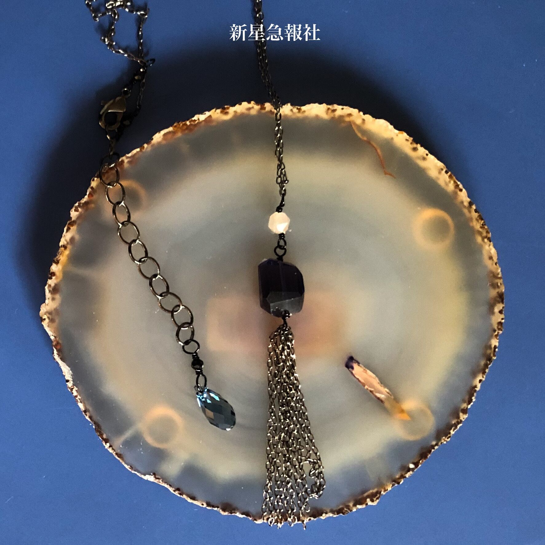 アイオライト、ムーンストーン、ブラックスピネル、ガラス(スワロフスキー社製)