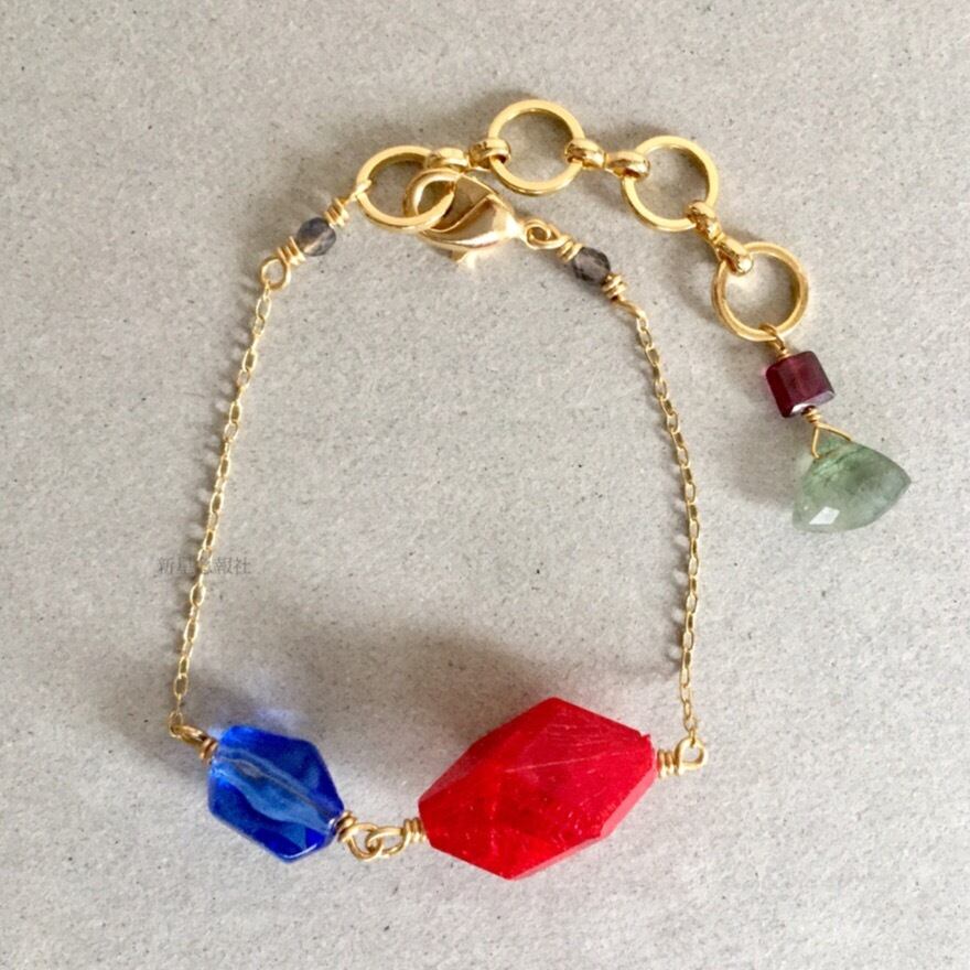 アクセサリーは樹脂素材、アイオライト、ガーネット