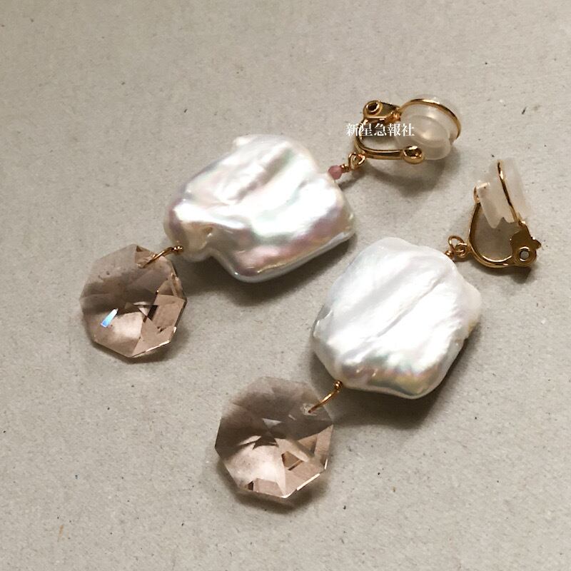 淡水真珠、ガラス(スワロフスキー社製)、トルマリン