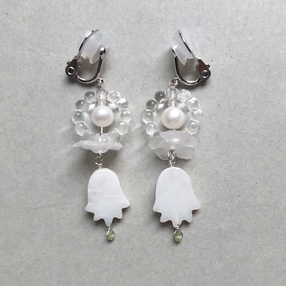 貝素材、淡水真珠、樹脂素材、アイオライト、ペリドット
