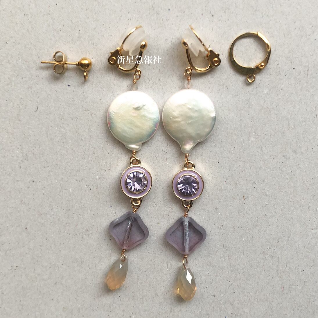淡水真珠、ガラス(一部チェコ製、スワロススキー社製)