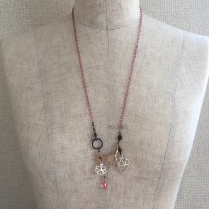 アクセサリーはガーネット、アイオライト、プレナイト