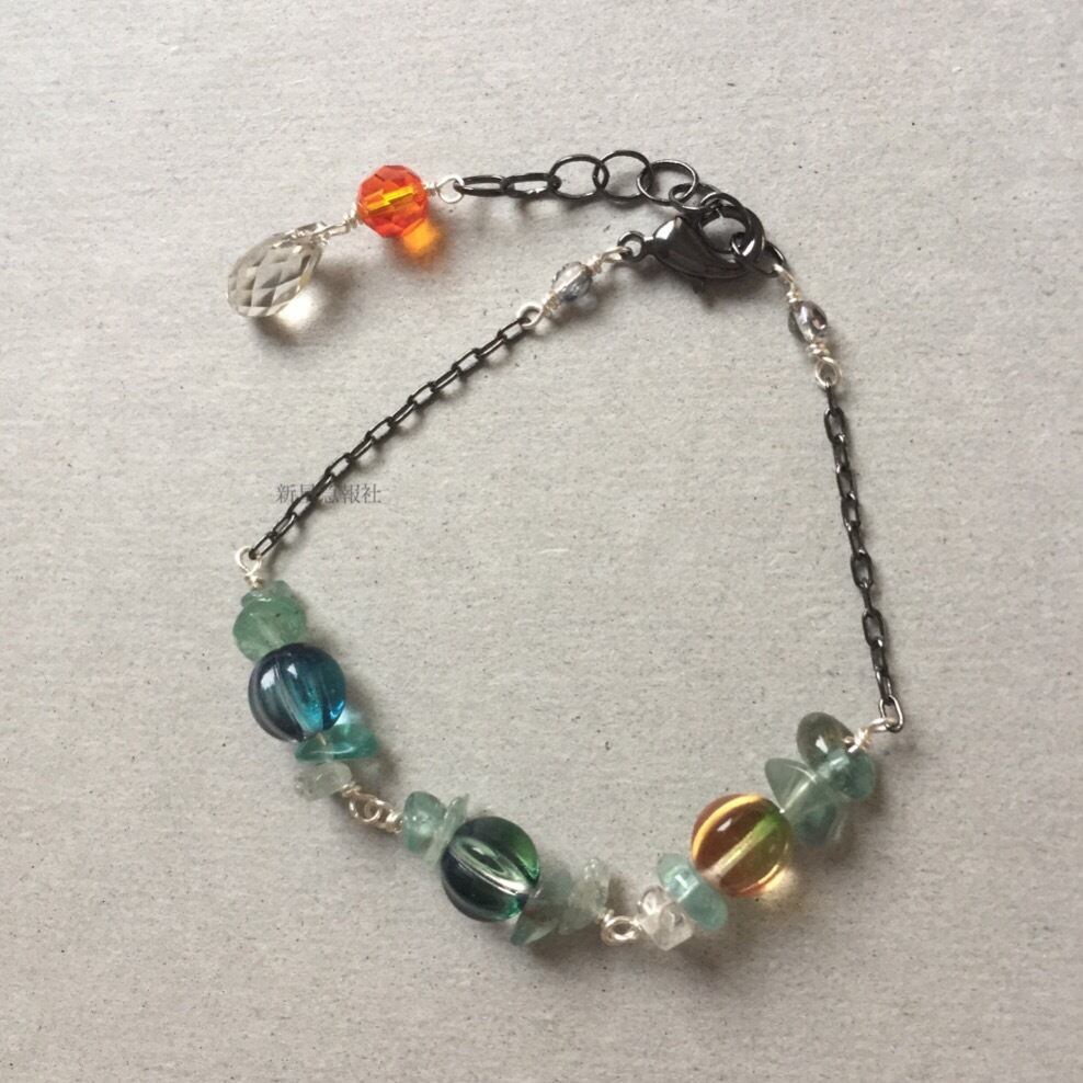 水晶、アパタイト、ガラス(一部スワロフスキー社製、チェコビーズ)を含みます。