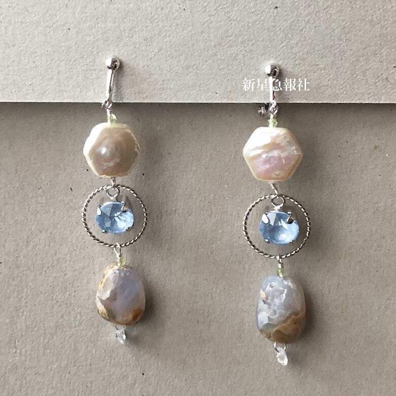 淡水真珠、ブルーカルセドニー(母岩つき)、