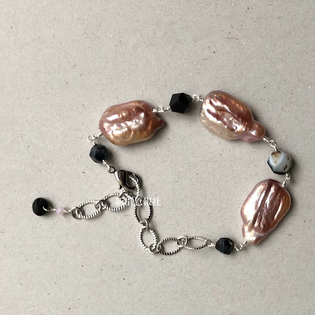 淡水真珠、オニキス、ガラス(スワロフスキー社製)