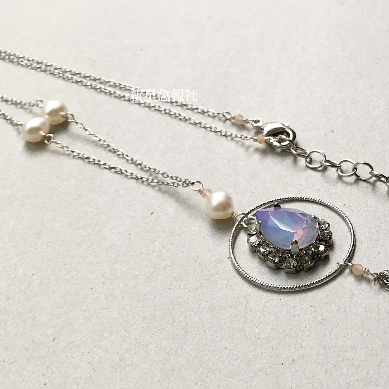 ガラス(スワロフスキー社製)、淡水真珠、ムーンストーン