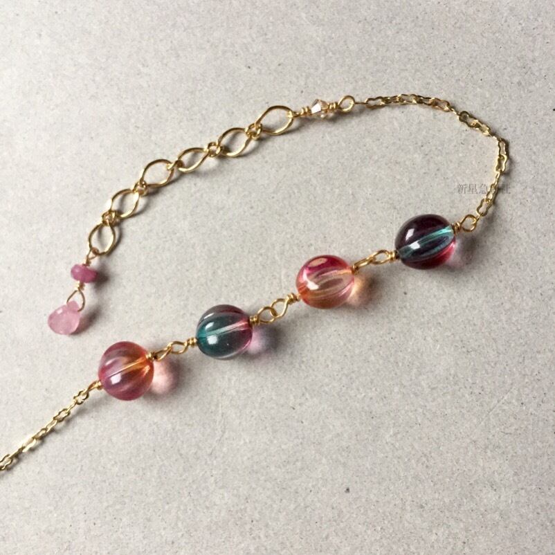 アクセサリーはピンクサファイア、ガラス(チェコビーズ)を含みます。