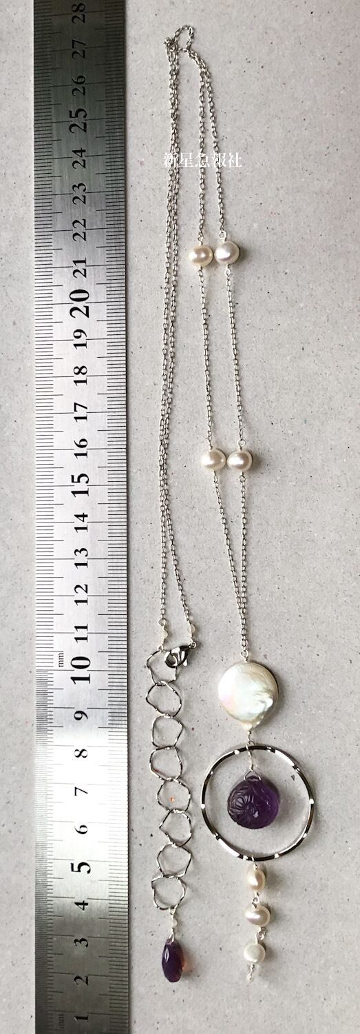アメシスト、淡水真珠、ムーンストーン、ガラス