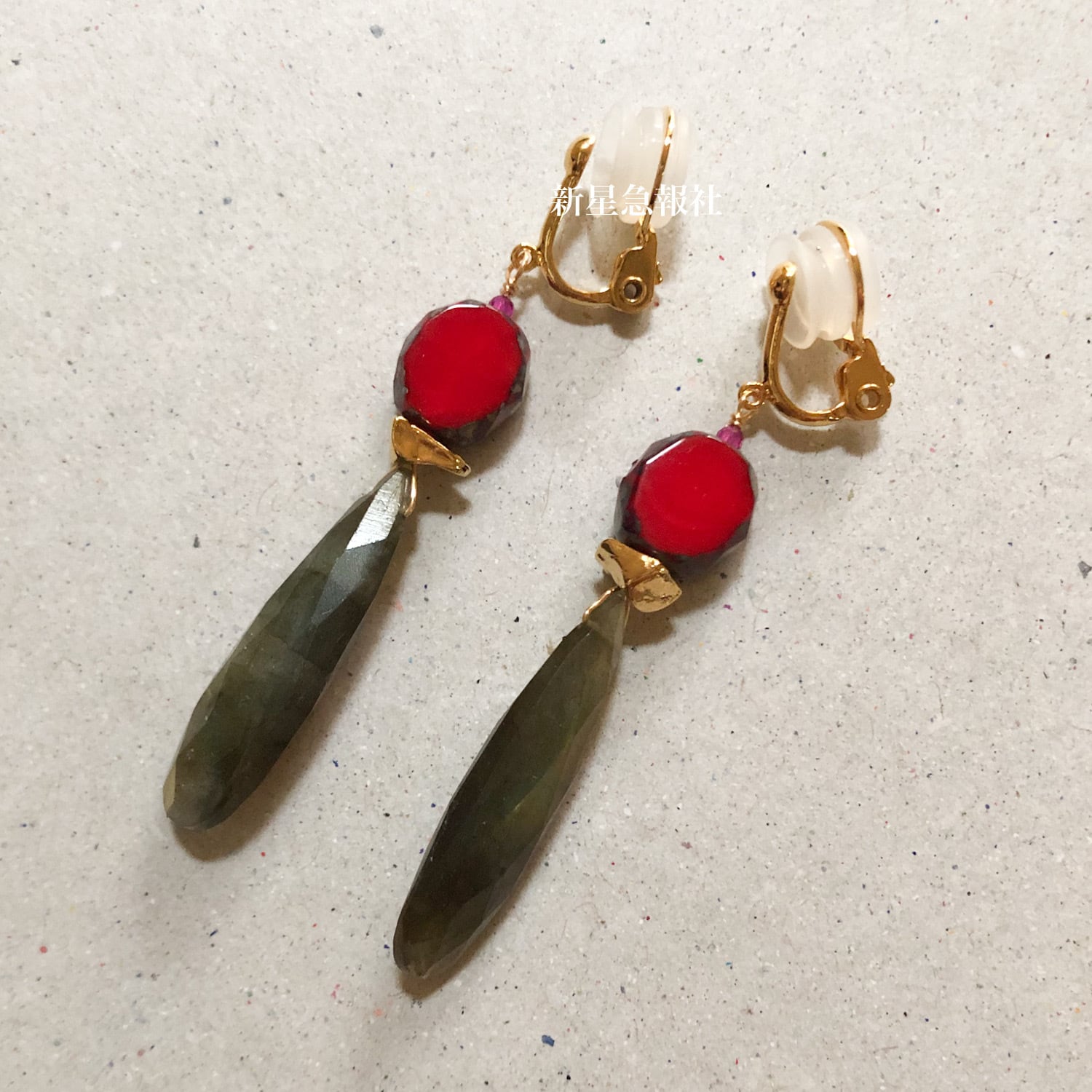ラブラドライト、ガラス(チェコ製)、人工合成ルビー
