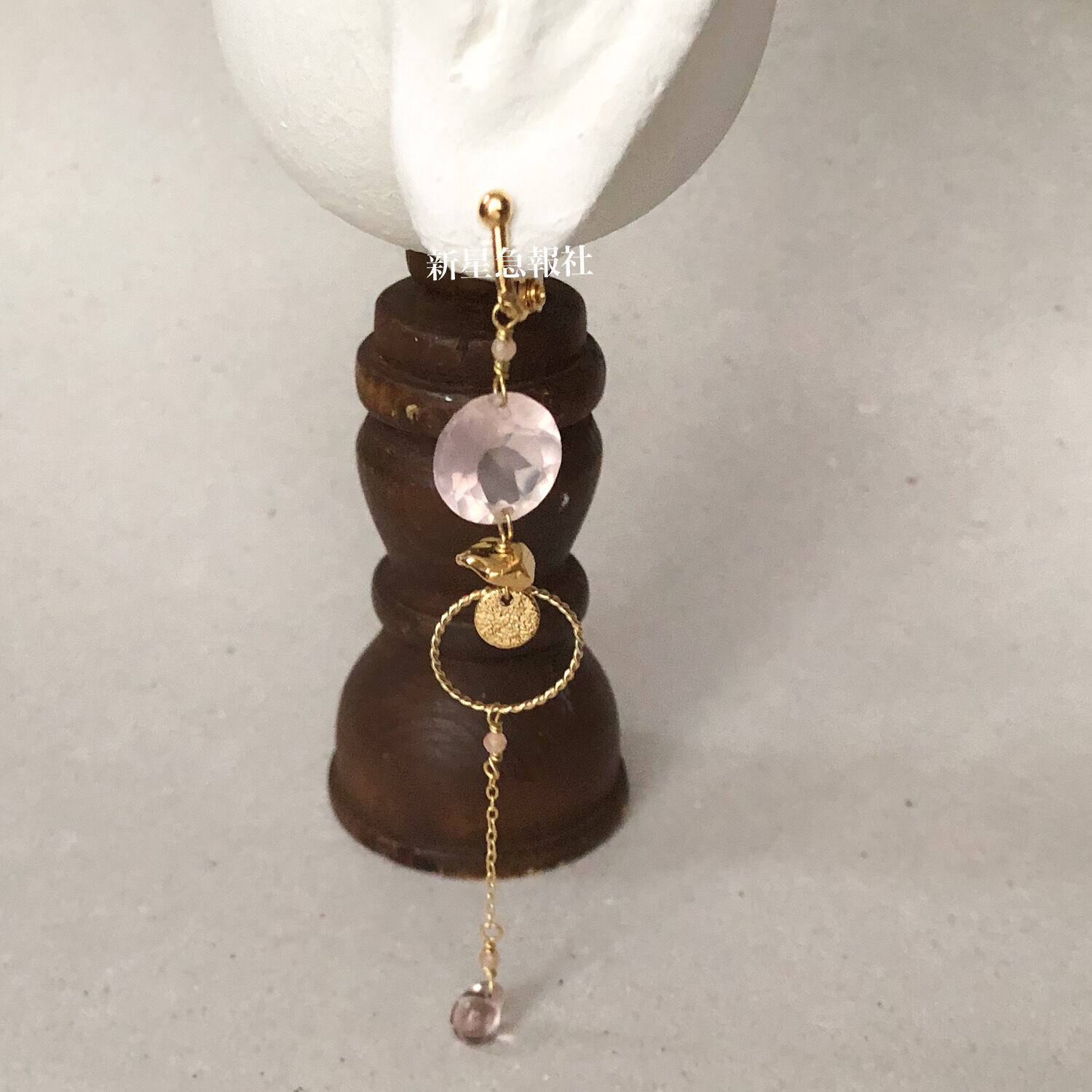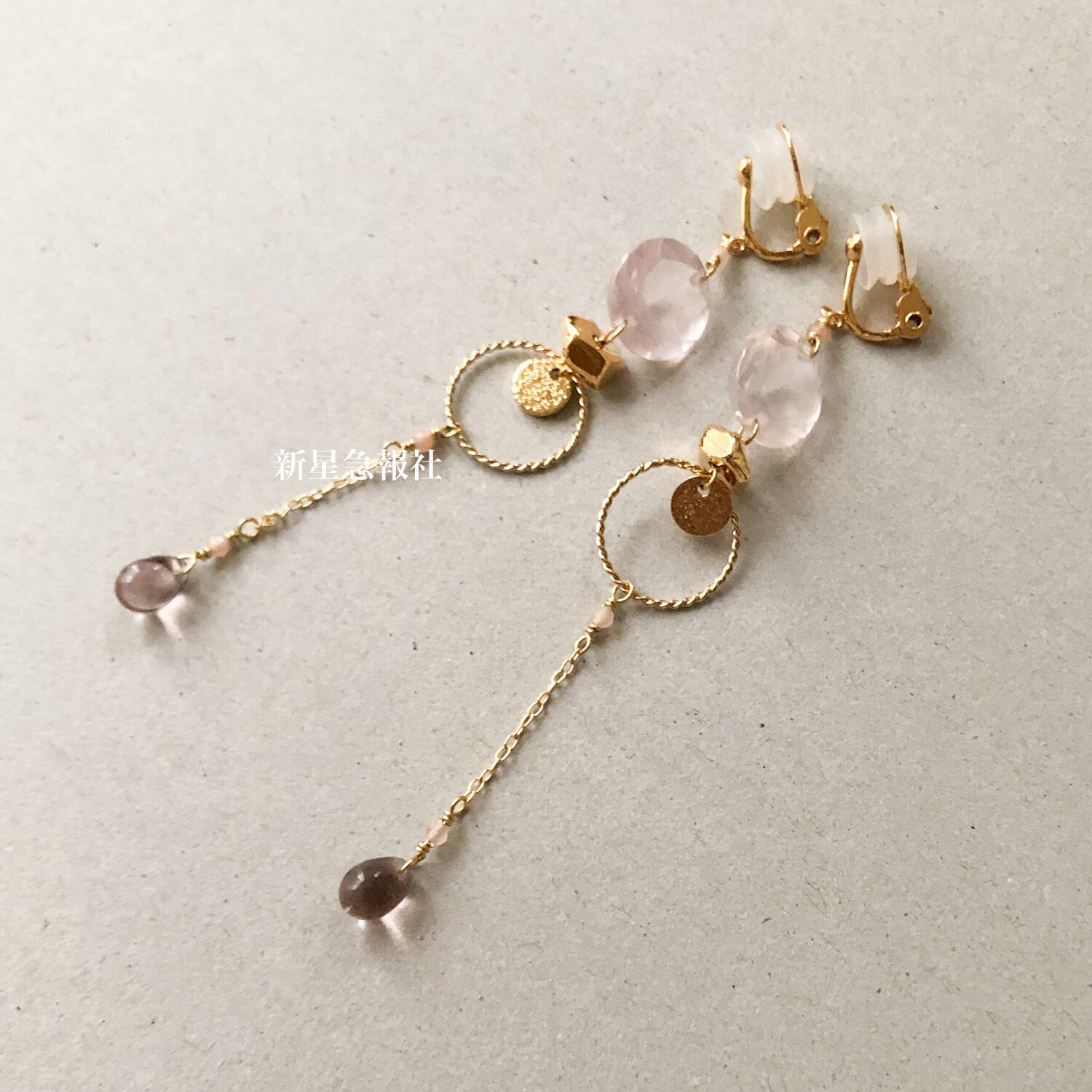 ローズクォーツ、ムーンストーン、ガラス(チェコ製)