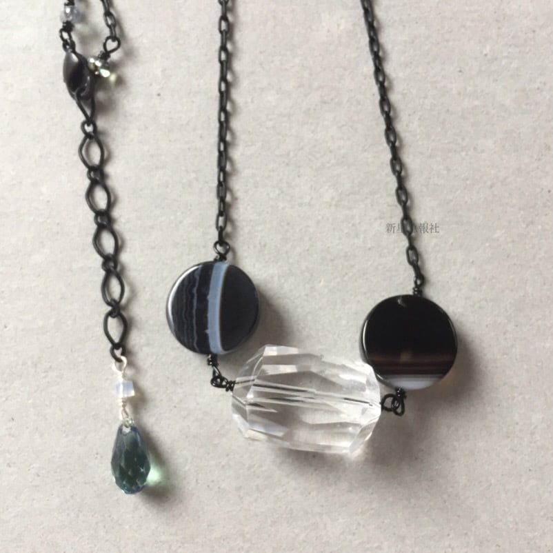アクセサリーはオニキス、水晶、ガラス(一部チェコビーズ、スワロフスキー社製品)を含みます。