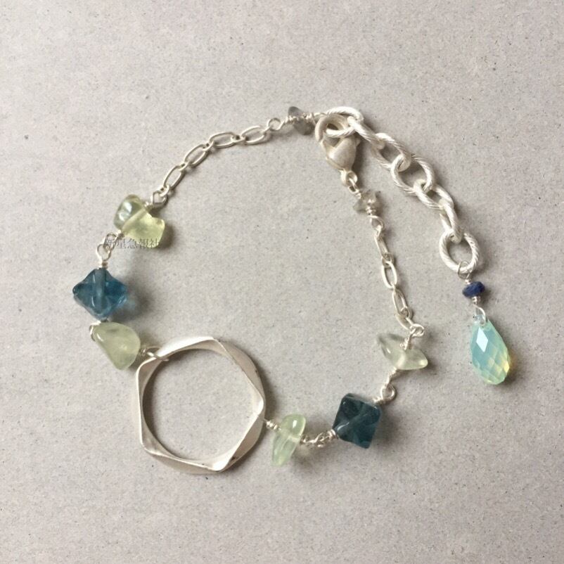 アクセサリーはプレナイト、フローライト、ラブラドライト、サファイア