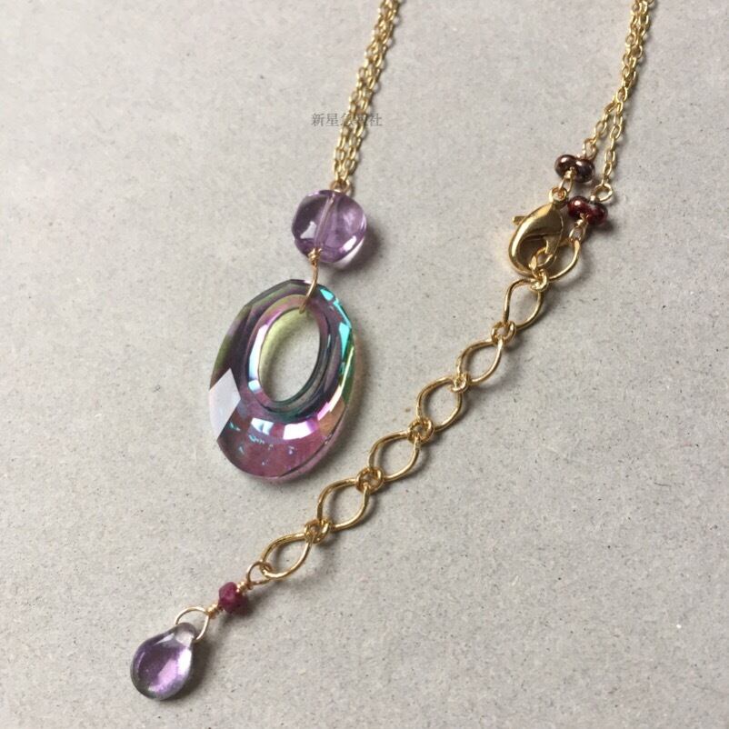 アクセサリーはアメシスト、ルビー、ガラス(一部チェコビーズ、スワロフスキー社製)を含みます。