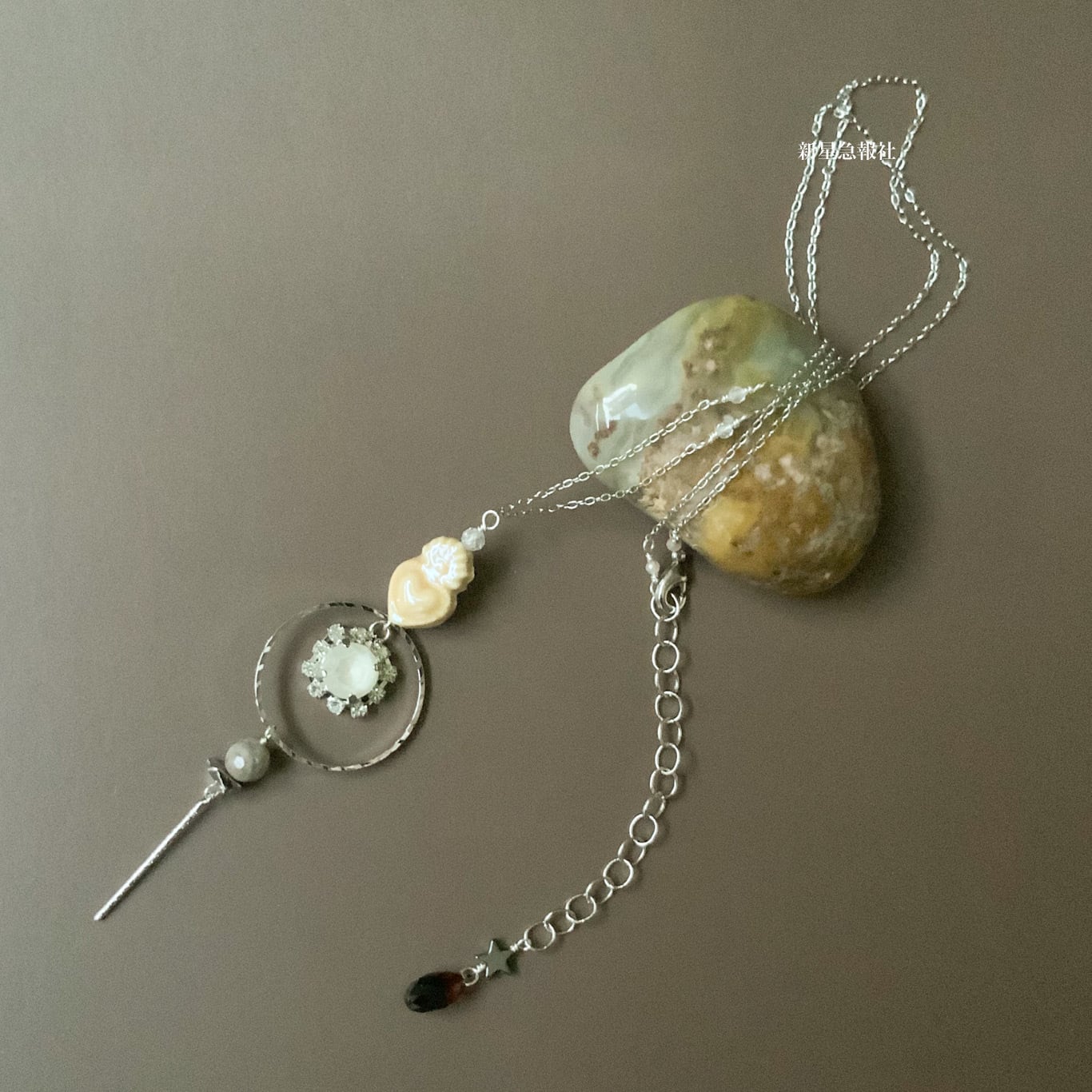 ガラス(オーストリア製)、陶器、化石珊瑚、ジルコン、水晶、ヘマタイト、ムーンストーン