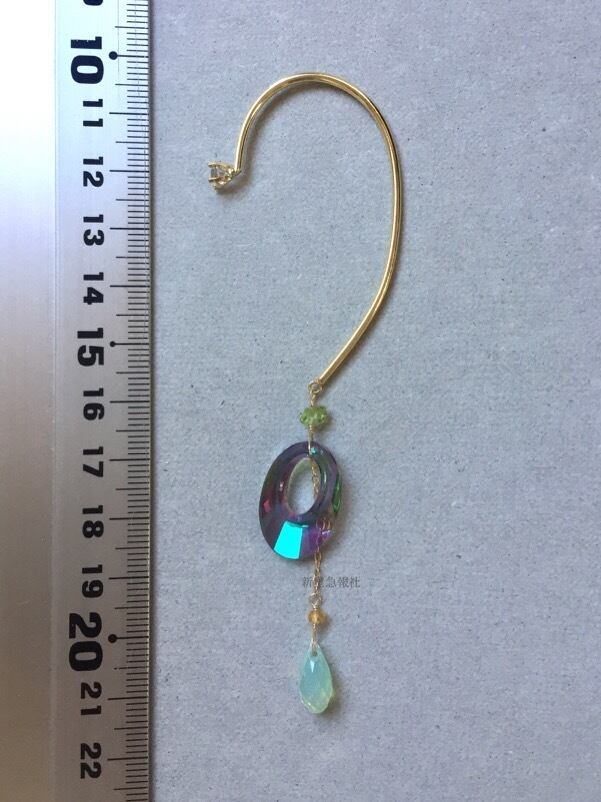 アクセサリーはぺリドット、イエローサファイア、ガラス(スワロフスキー社製)を含みます