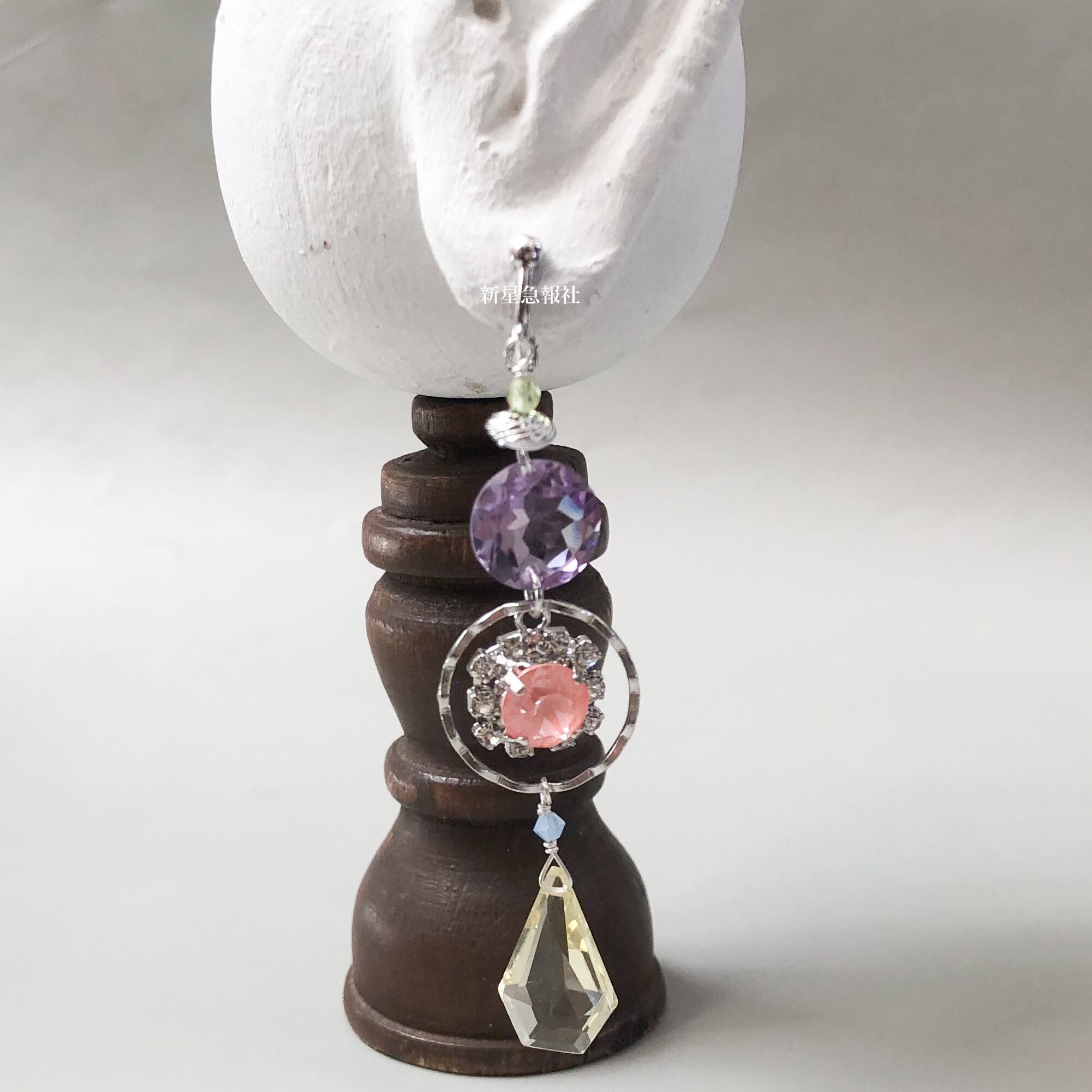 レモンクォーツ、アメシスト、ペリドット、ガラス(オーストリア製)