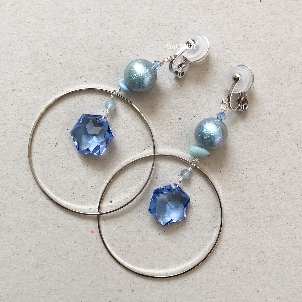 ガラス(オーストリア製)、樹脂、ラリマー、アクアマリン