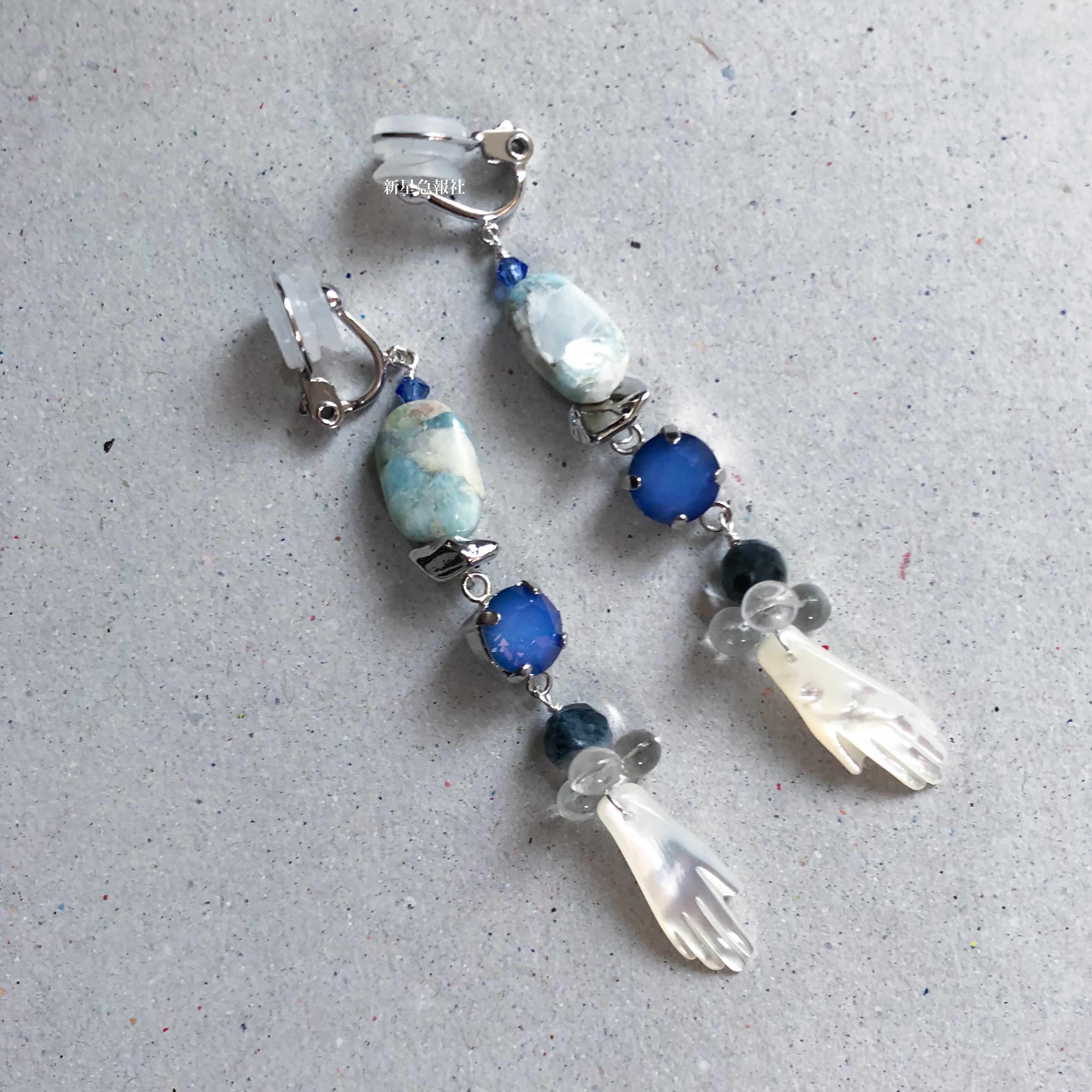 ラリマー・銅混合素材、ガラス(オーストリア製)、