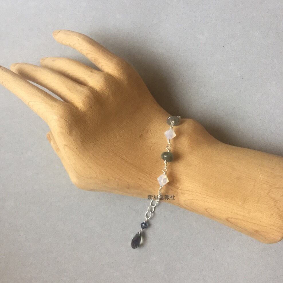 アクセサリーはアパタイト、ガラス(スワロフスキー社製)を含みます。