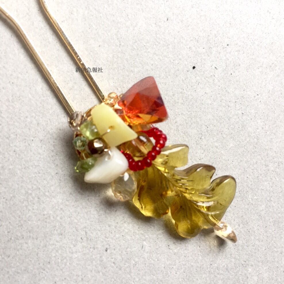 シトリン(染色)、ガラス(一部チェコビーズ、スワロフスキー社製)を含みます。