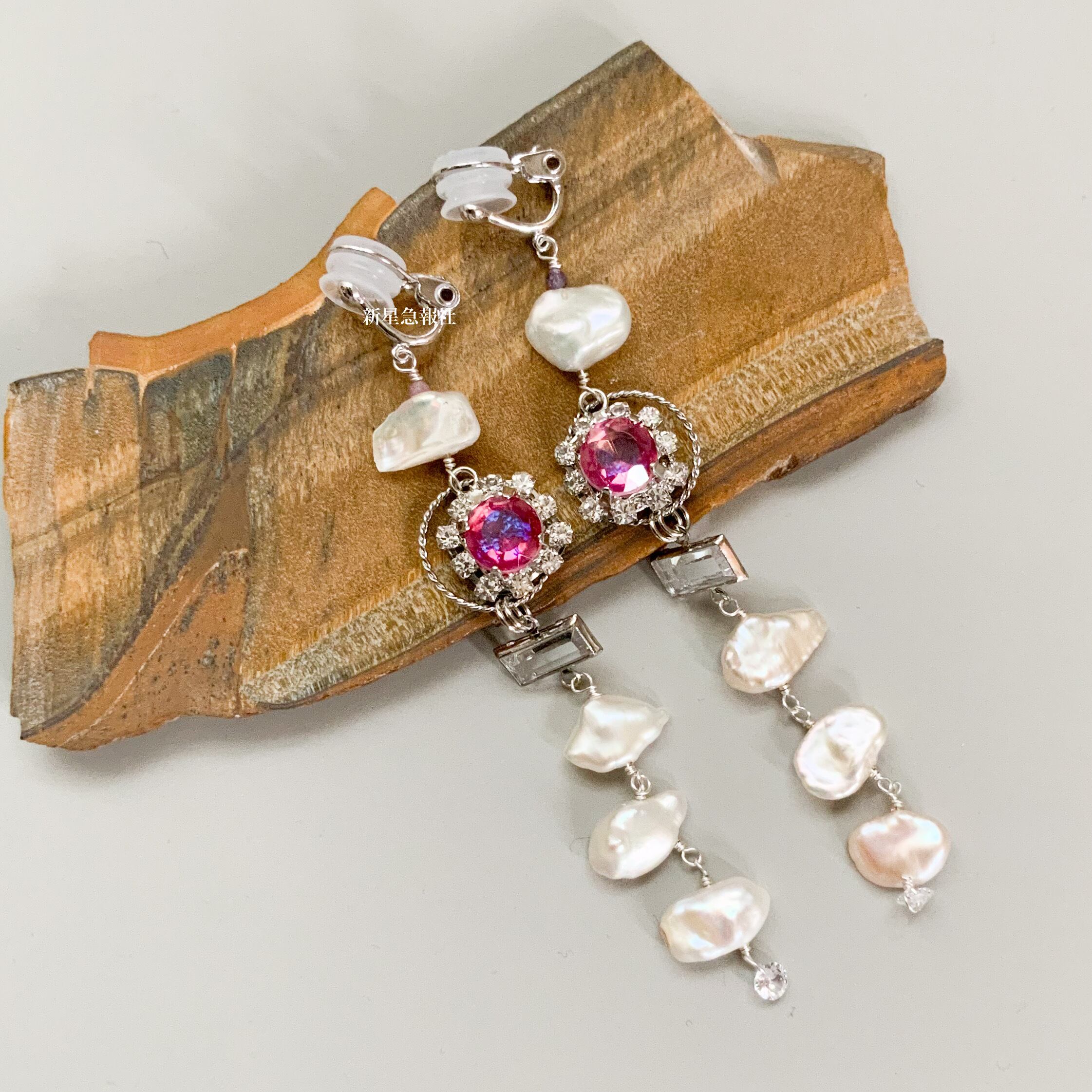 淡水真珠、ガラス(チェコ製)、キュービックジルコニア、トルマリン