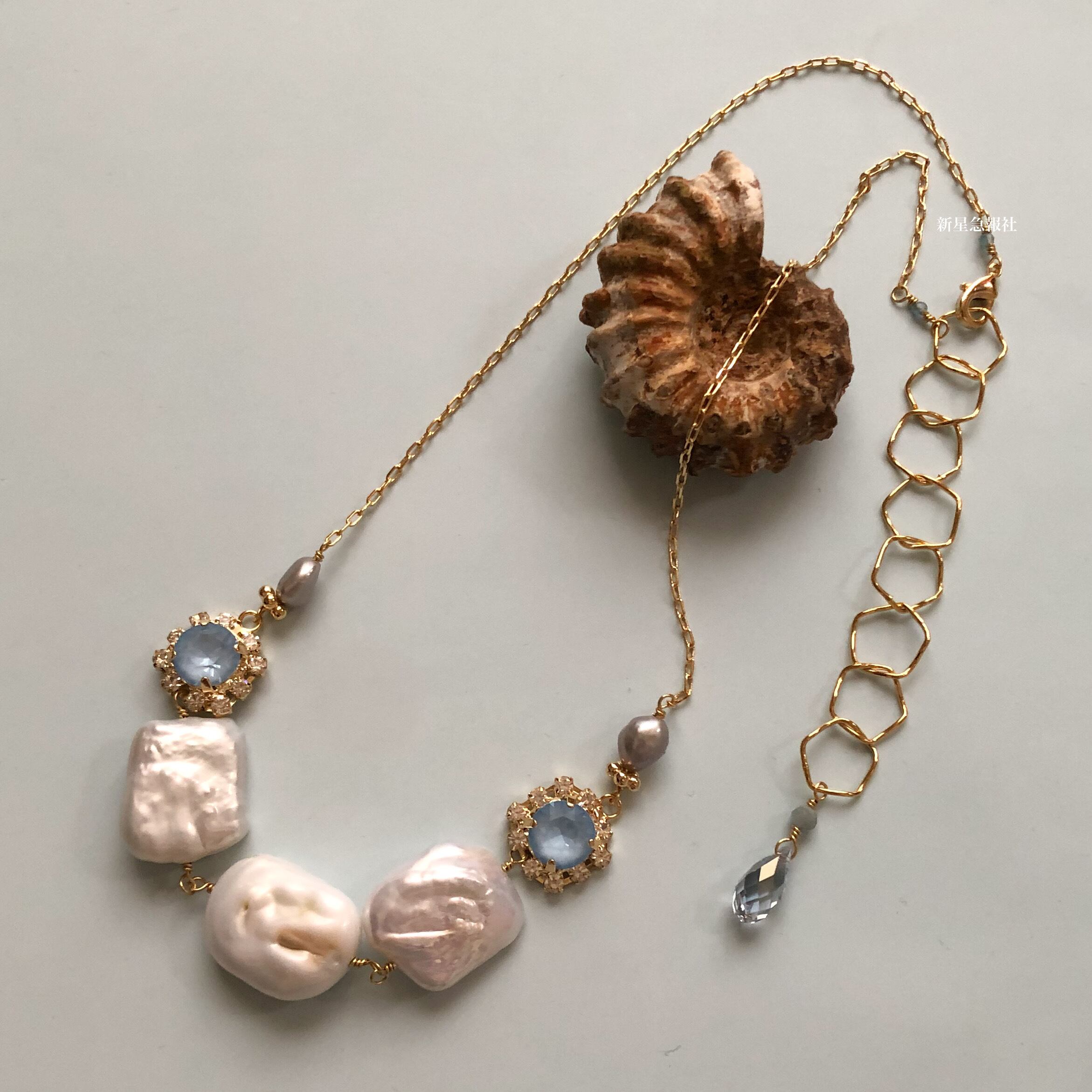 淡水真珠、ガラス(オーストリア製)、アクアマリン